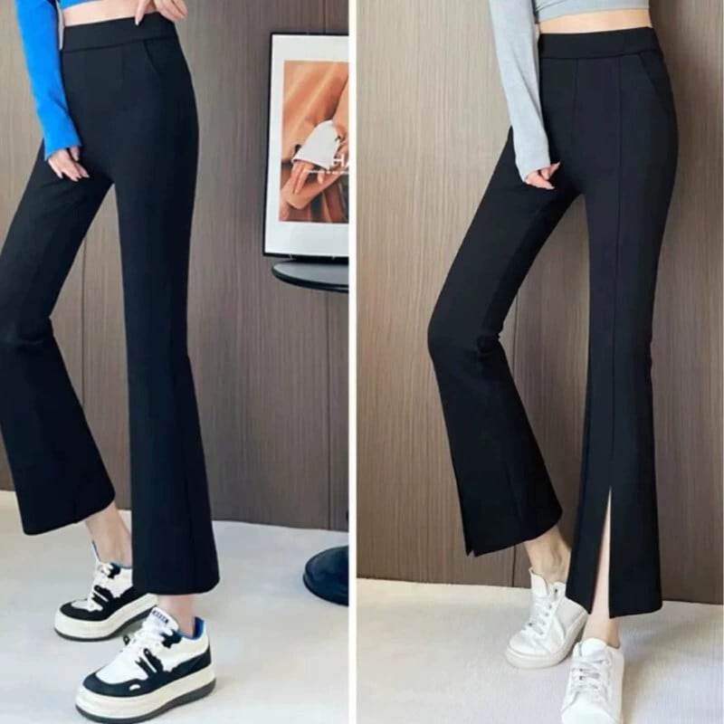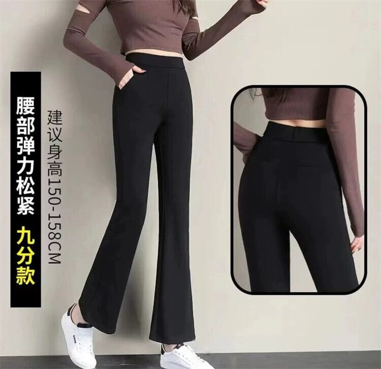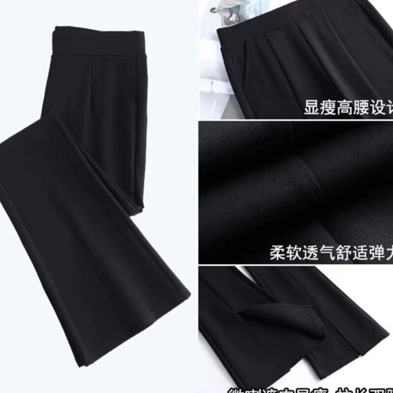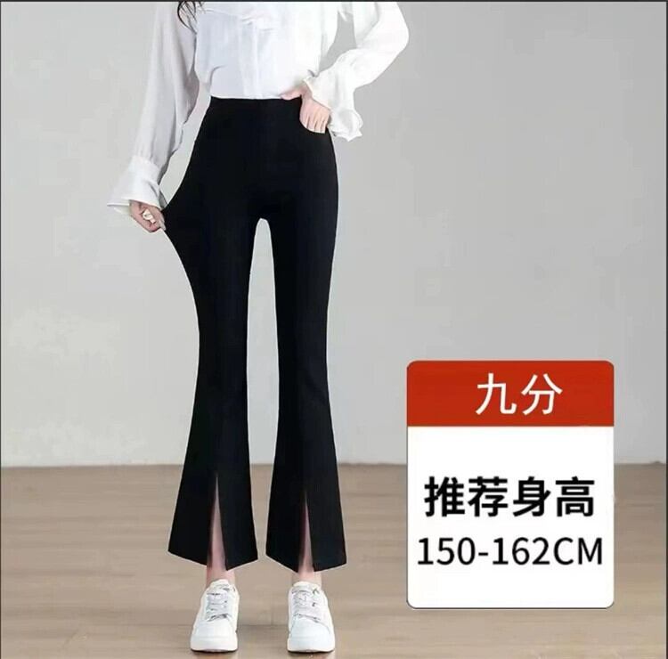 プラスサイズの女性の新しいベルボトムパンツファットmm女性の春のハイウエストスリムとドレープブラックフロントスリット9ポイントパンツ 大きめサイズ スプリング 春物 8884123167350342