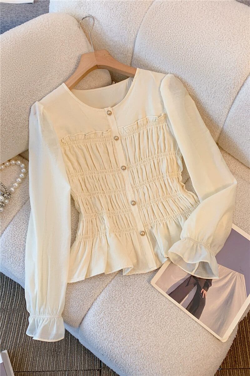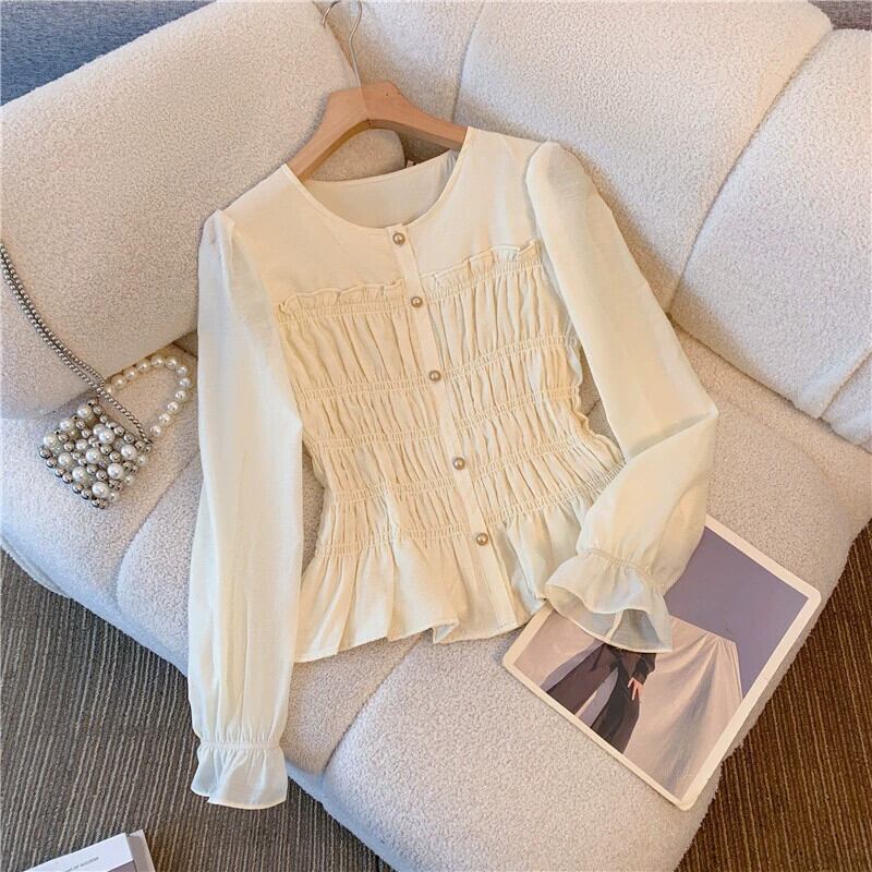 プラスサイズの婦人服ファット mm 春の新スタイル 2024 フレンチラウンドネックハイエンドニッチシャツ多目的痩身トップストレンディ 大きめサイズ スプリング 春物 Oネック 888414181181417