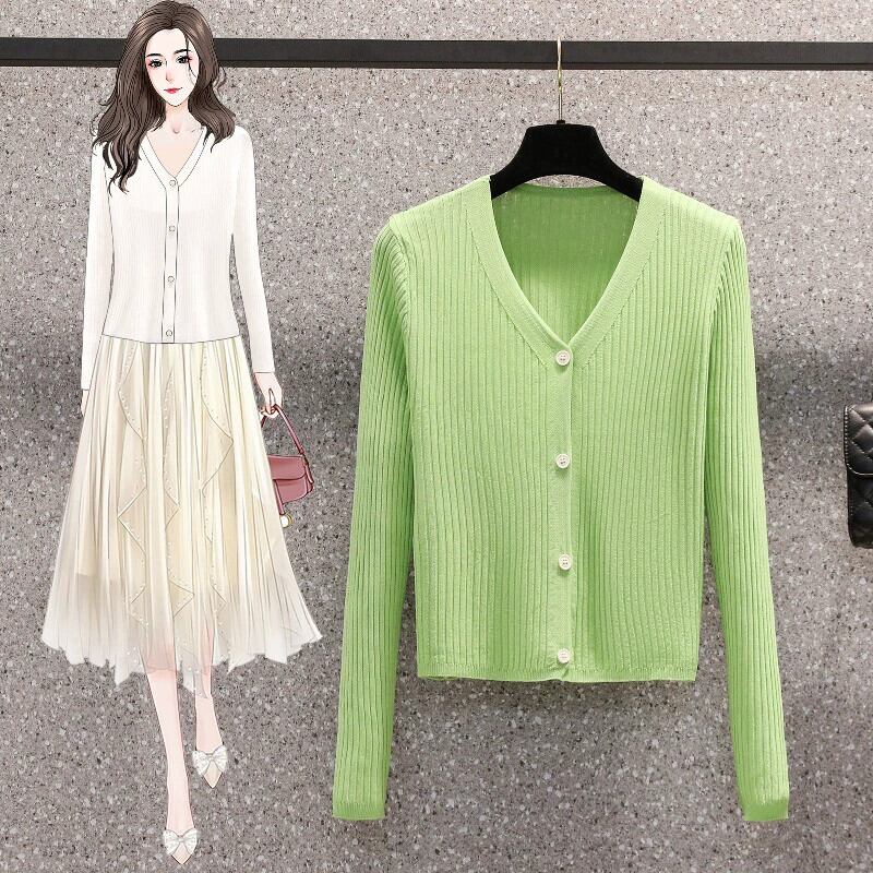 プラスサイズの婦人服ファット mm 春の新 2024 日焼け防止カーディガンニットセーターショート空調シャツ薄いジャケット 大きめサイズ スプリング 春物 888411471111144