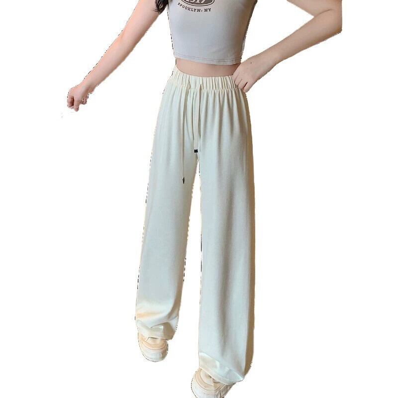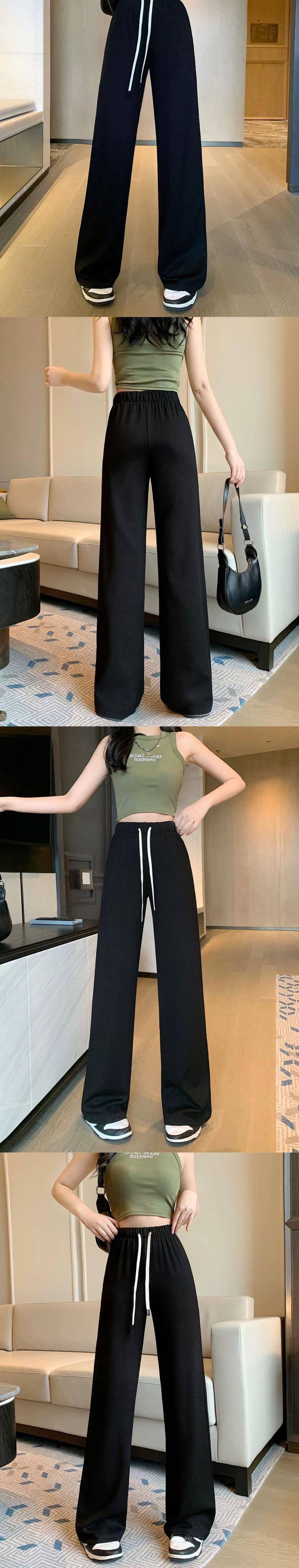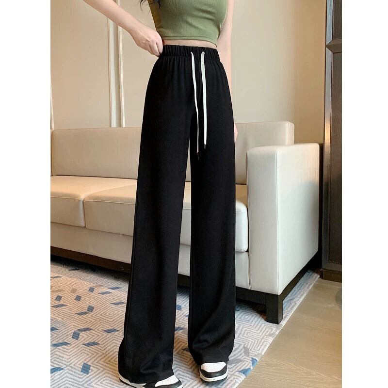 大きいサイズのシンプルな黒のカジュアルパンツの女性の夏の 2024 新しいハイウエストドレープワイドレッグパンツスリムストレートパンツ ハイウェスト ブラック 大きめサイズ サマー 夏物 ワイドパンツ 888413551439633