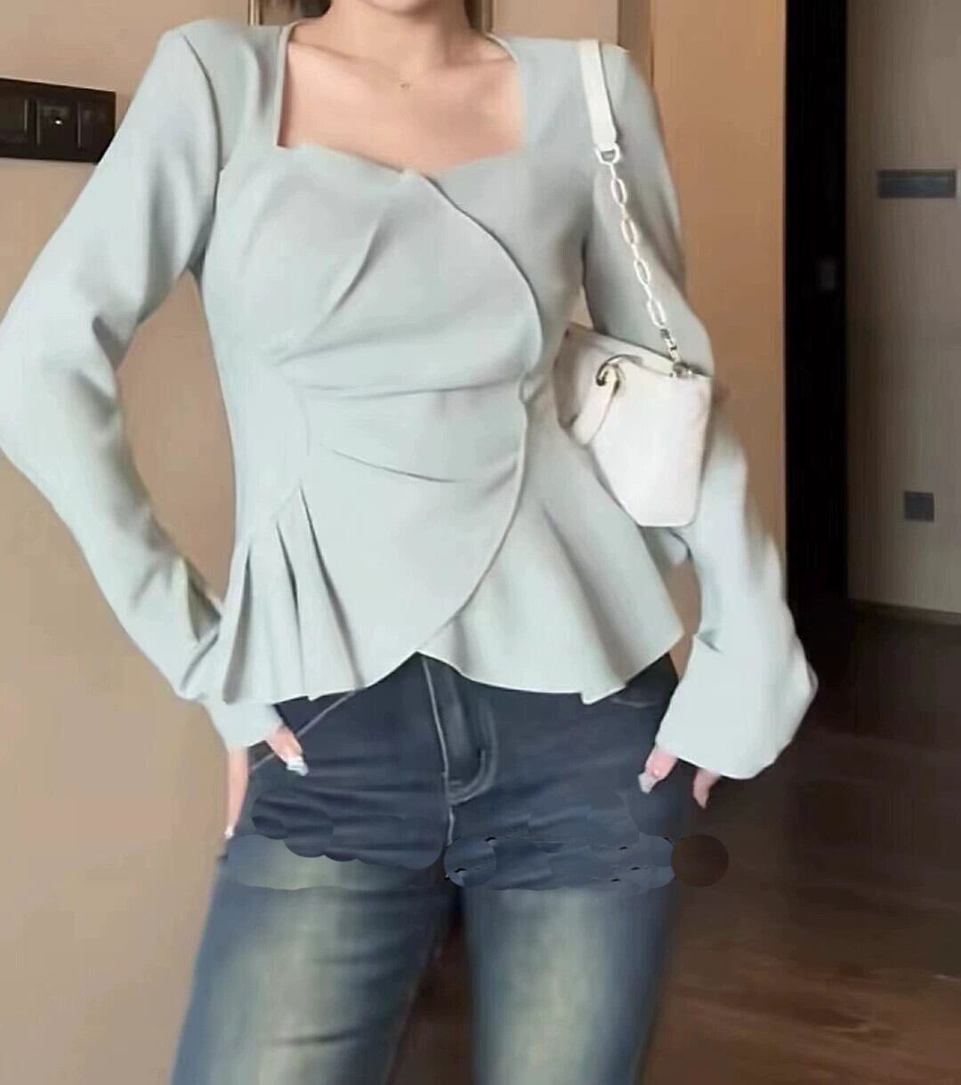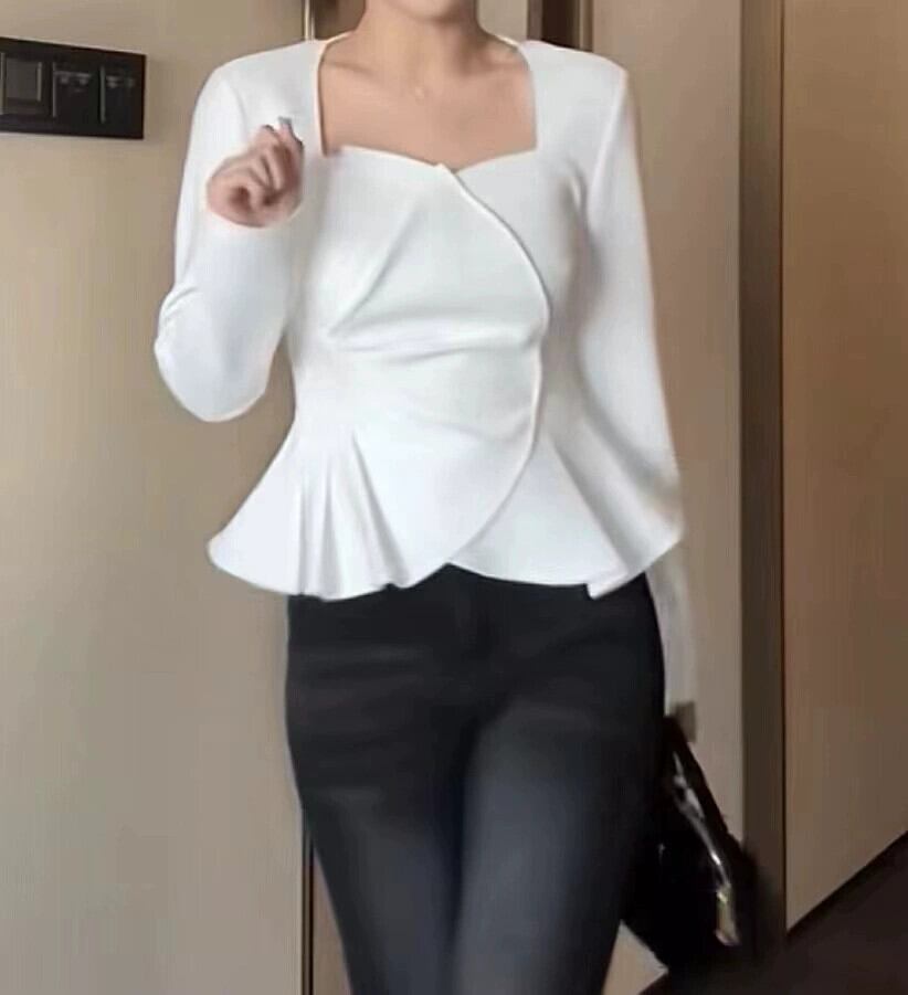 大きいサイズのデザインニッチ花びら長袖セーター女性 2024 早春少し太いハイエンドシックなスクエアネックトップ ロング 大きめサイズ スプリング 春物 スクウェア 8884136603777762