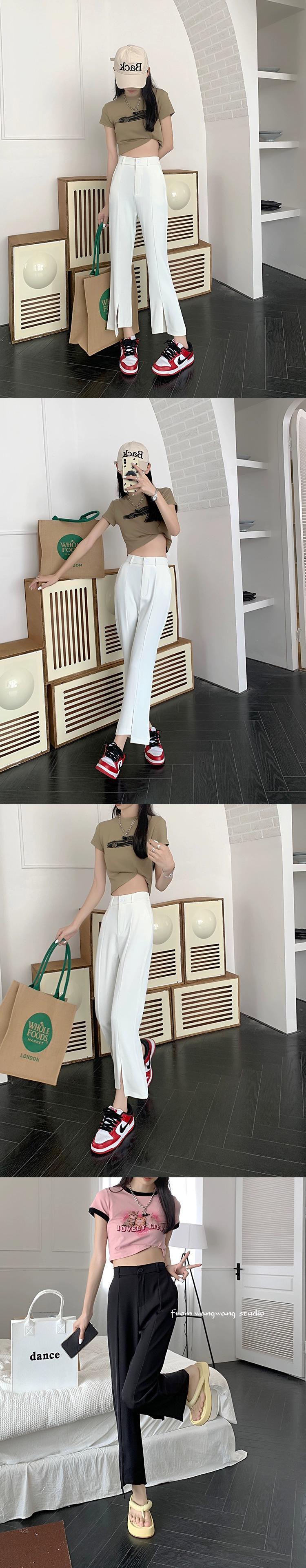 プラスサイズの婦人服ファットミリメートル春の新スタイル 2024 デザインスリット弾性ウエストスーツパンツハイウエスト 9 点パンツ女性 ハイウェスト エラスティック 伸縮 大きめサイズ スプリング 春物 8884145146888882