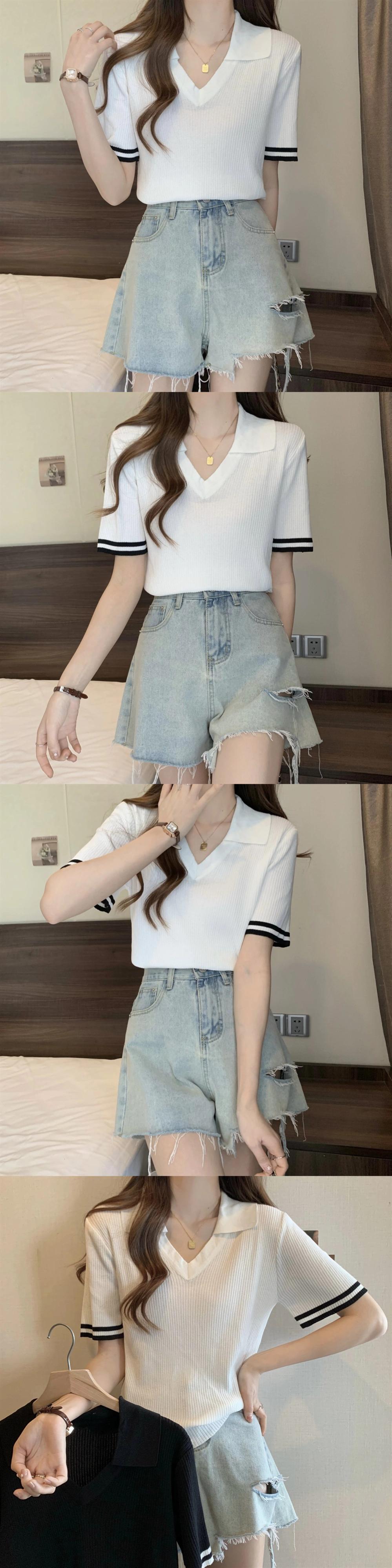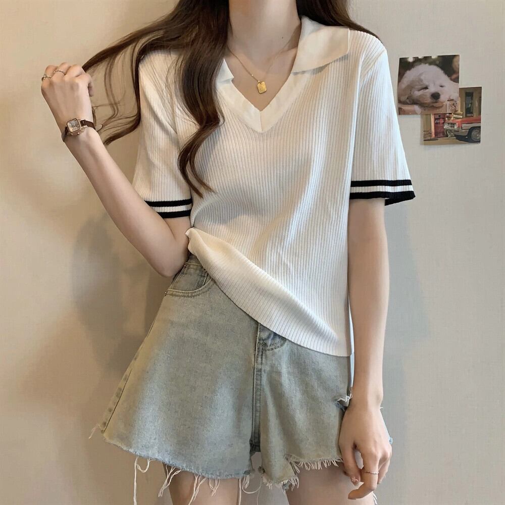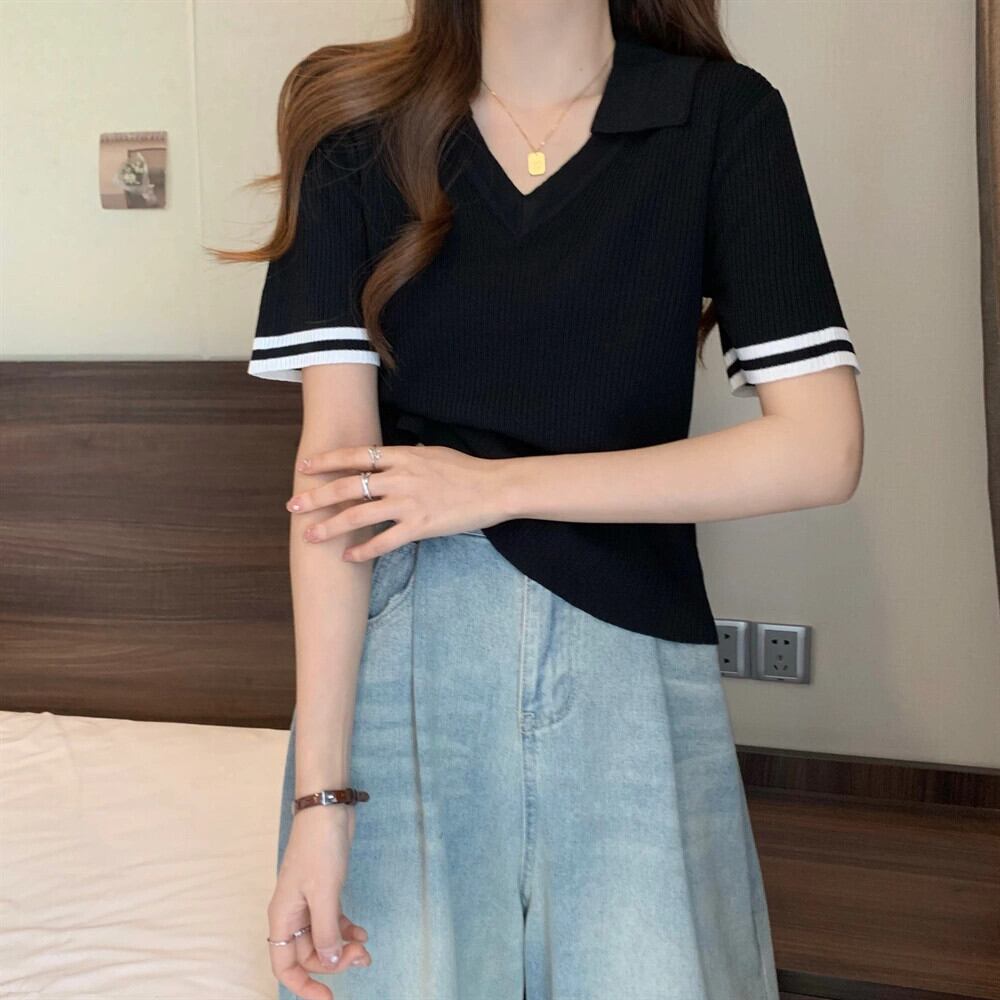 プラスサイズの女性の脂肪 mm 夏の新しいスタイル 2024 痩身と年齢を減らすシックな T シャツ対照的な色のアイスシルク T 半袖オールマッチトップ 大きめサイズ サマー 夏物 Tシャツ 8884143426333946