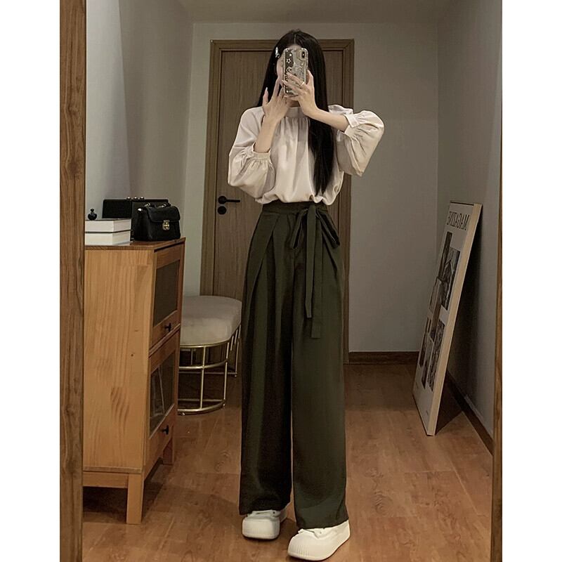 大きいサイズ ソルト風 ファッション スーツ レディース 春 フレンチ 無地 シャツ 軽い大人風 ドレープ カジュアル パンツ 2点セット 大きめサイズ スプリング 春物 ソリッドカラー 8884133392428124