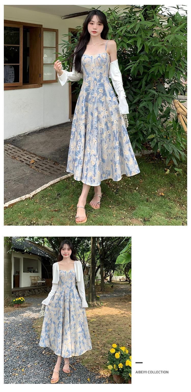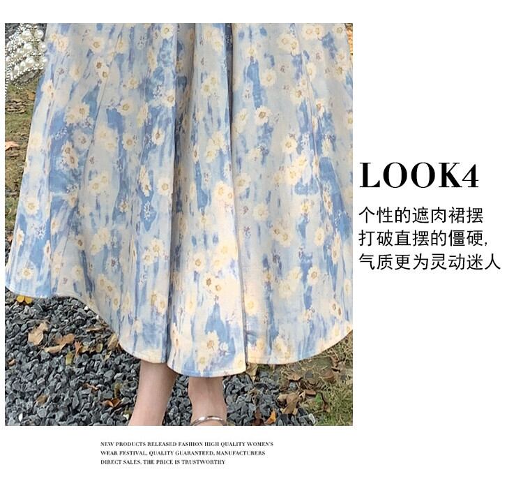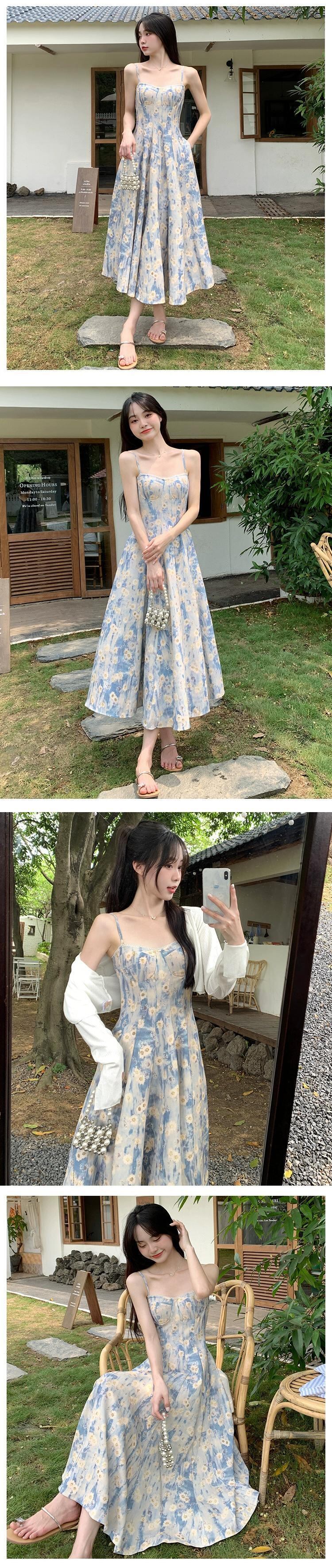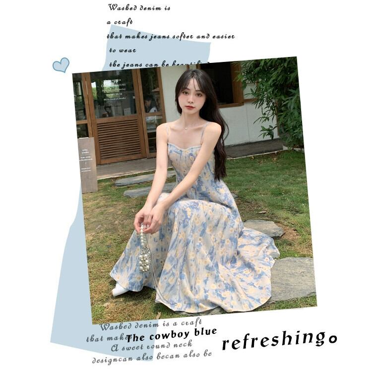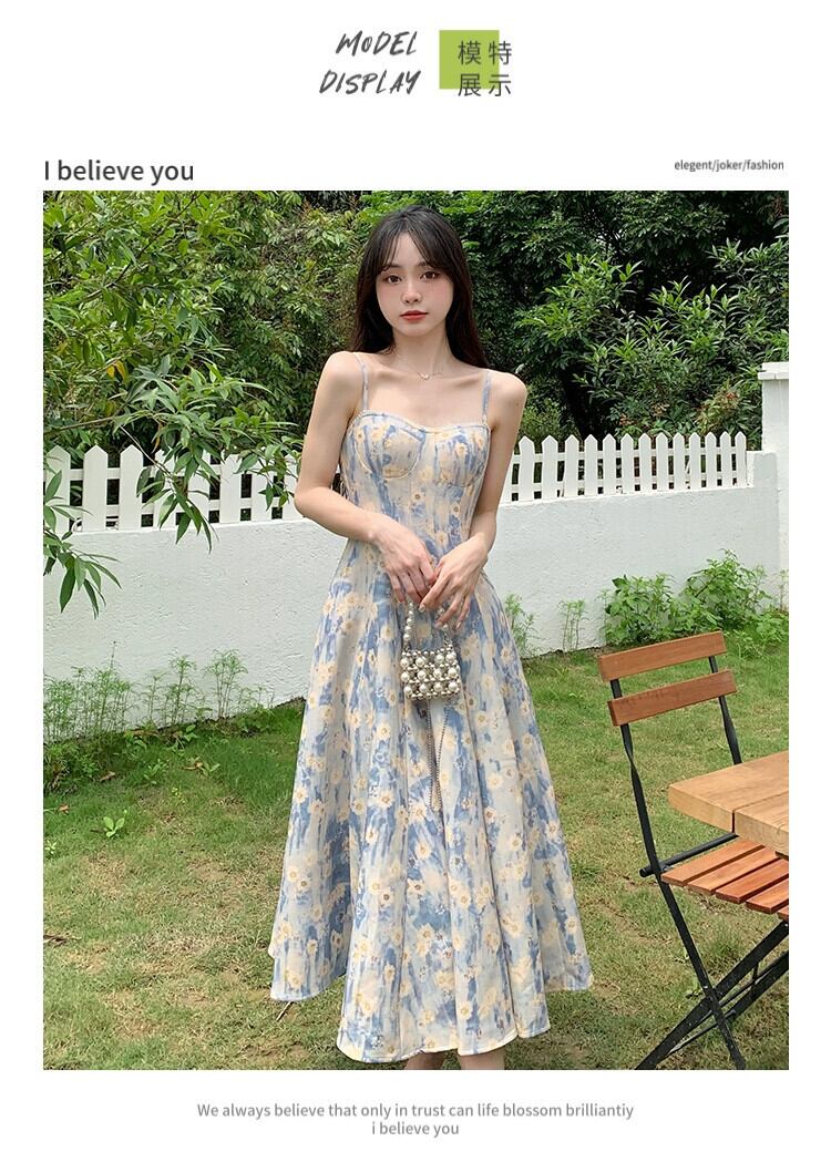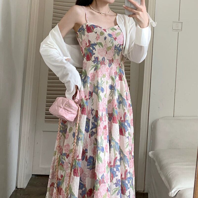 プラスサイズの女性のやや脂肪のフレンチ花柄ドレス女性のサスペンダーロングスカートハイエンド脂肪ミリメートル痩身腹カバースカート 大きめサイズ 8884174900877062