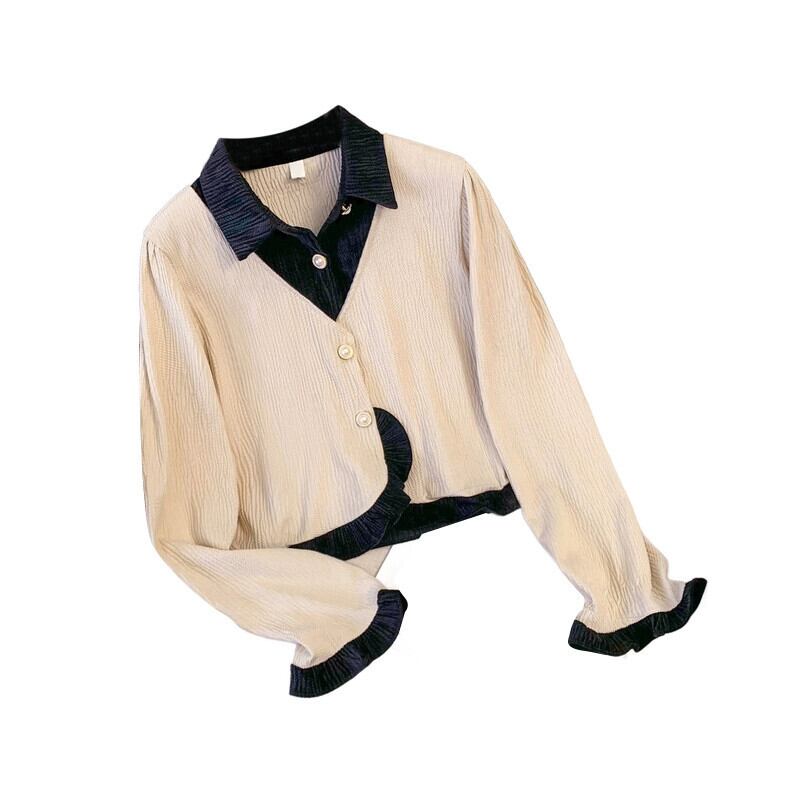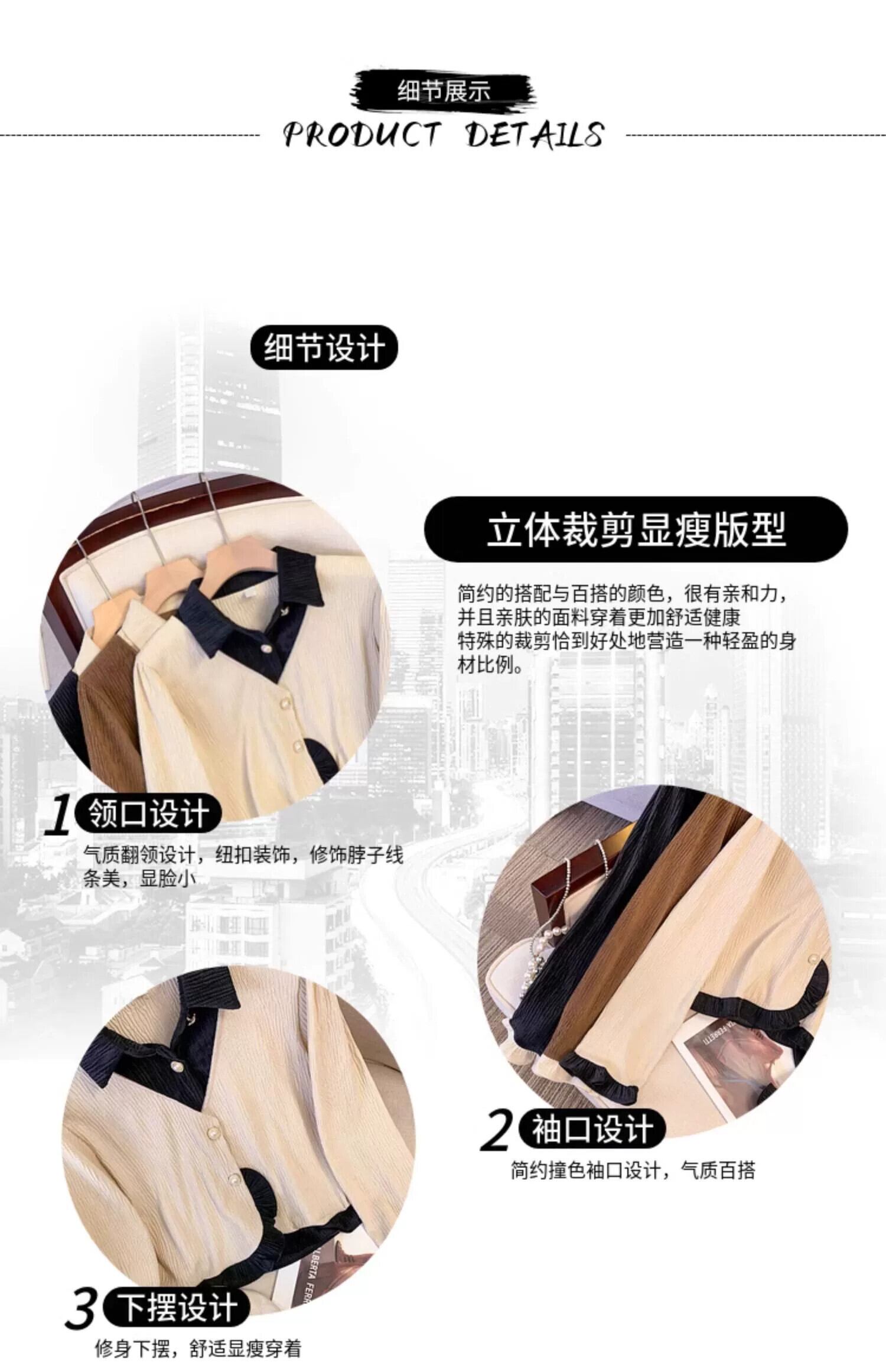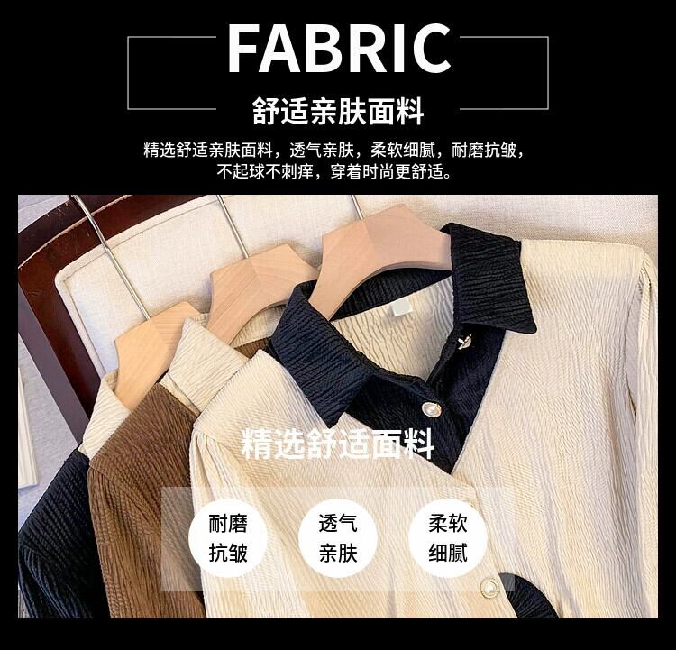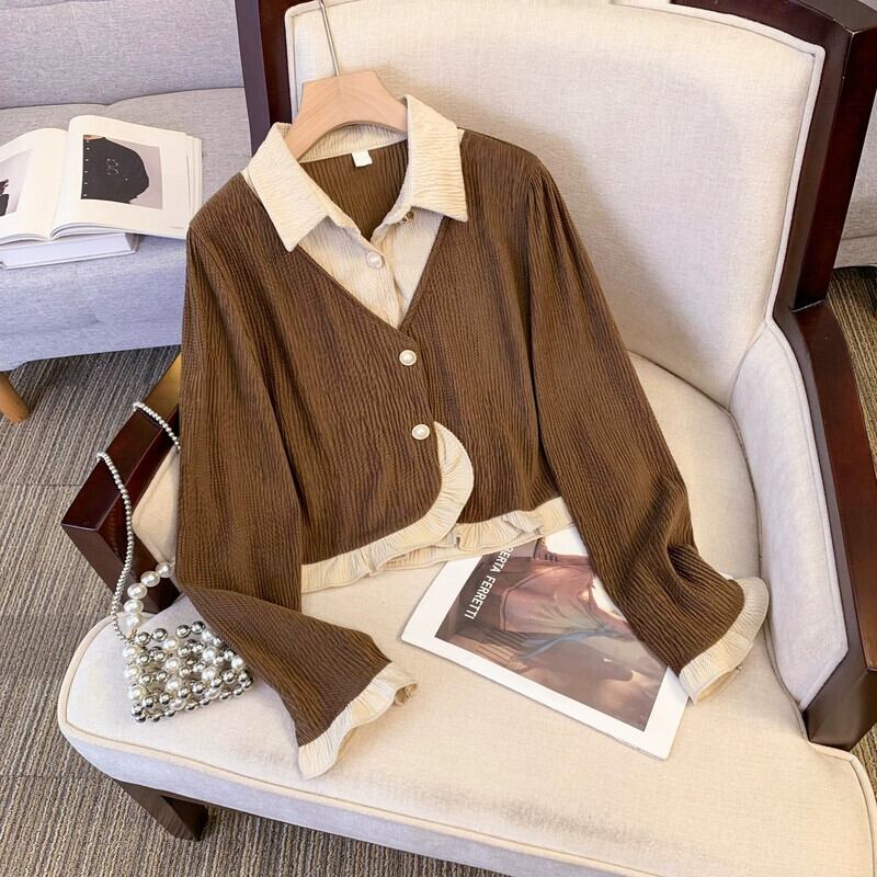 プラスサイズの女性の脂肪 mm 春の新しいスタイル 2024 スプライシングファッショナブルな偽ツーピース シャツ痩身と肉カバー デザイン トップス 大きめサイズ スプリング 春物 8884168974721927