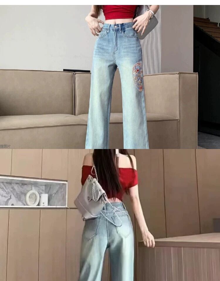 2024年の新しいハイウエストストレートジーンズの女性、刺繍デザインの国民的なスタイルのジーンズ、気質、汎用性があり、春先にスリムになります。 スプリング 春物 8884145335208986