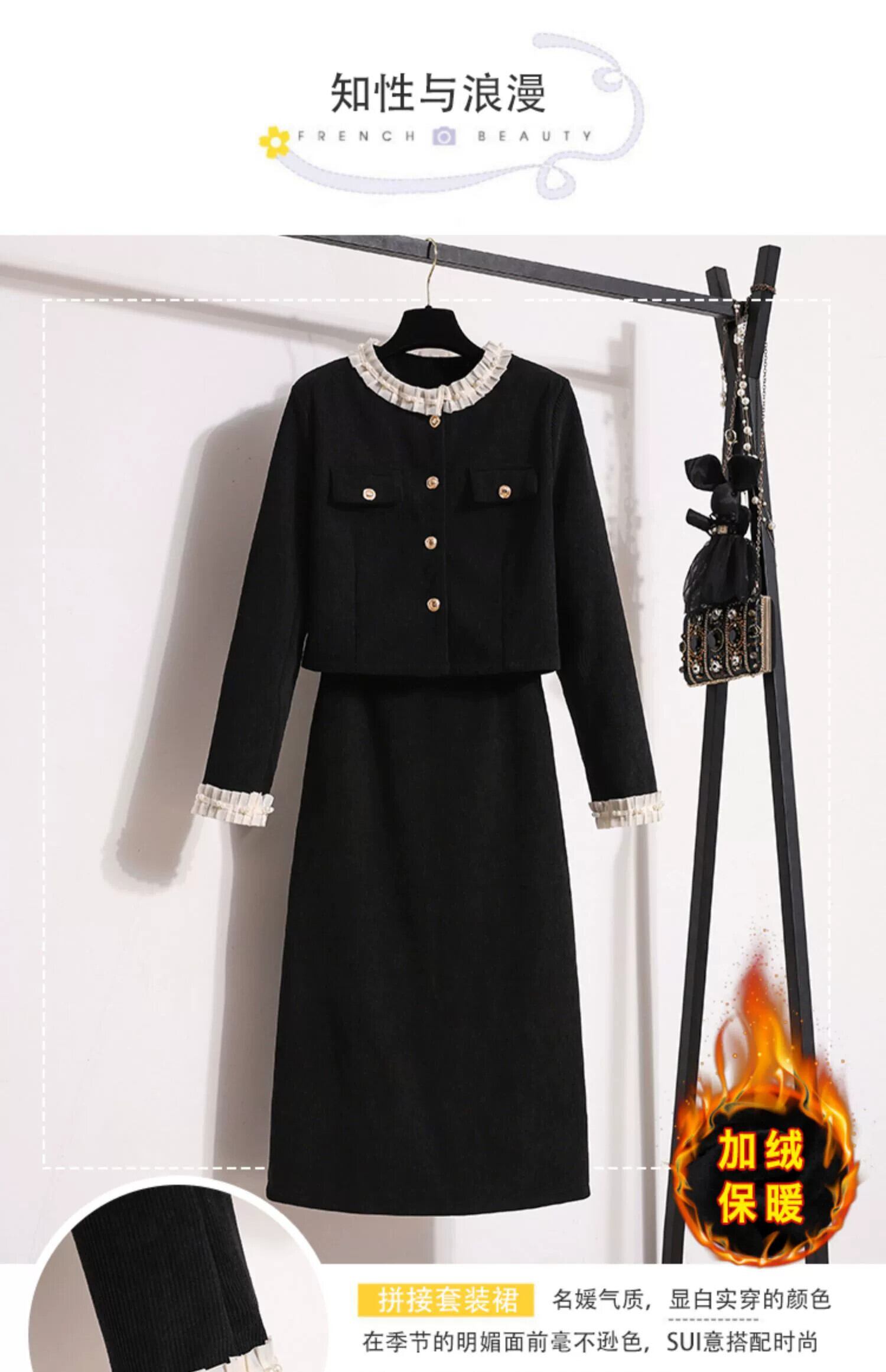 プラスサイズ 2023 春ファットシスター女性のレース襟多用途ジャケット + ウエストスリムスカートセット 大きめサイズ スプリング 春物 8884122506713781