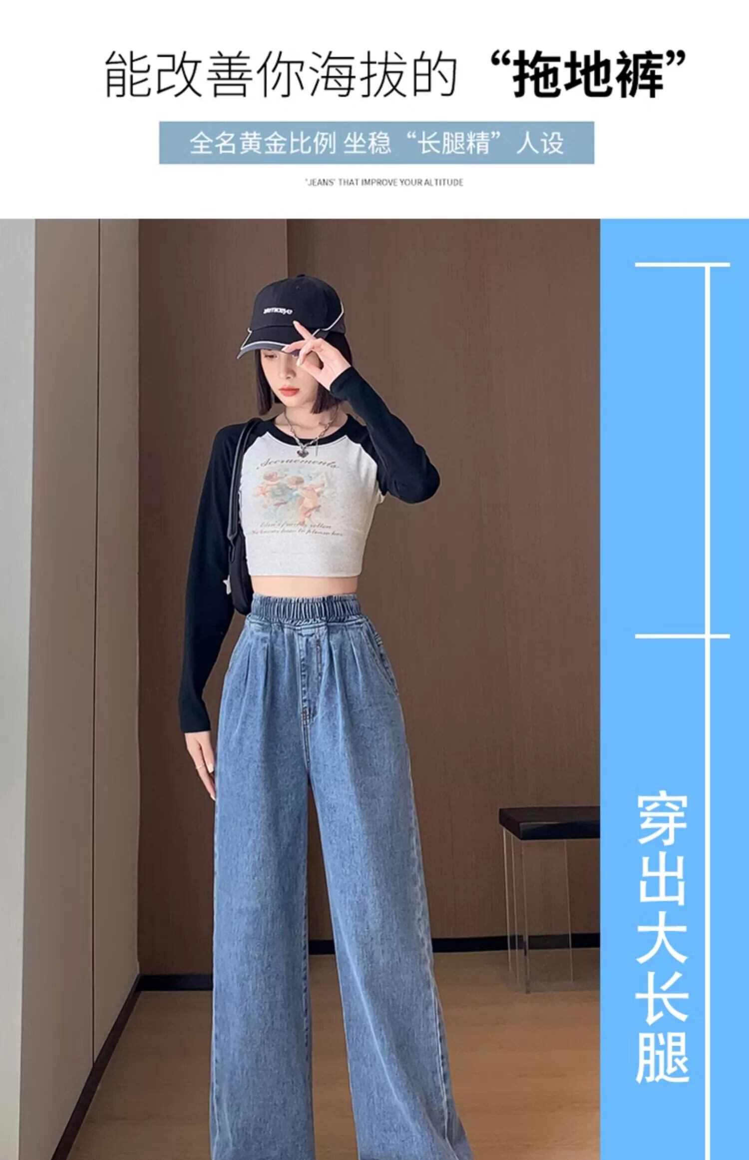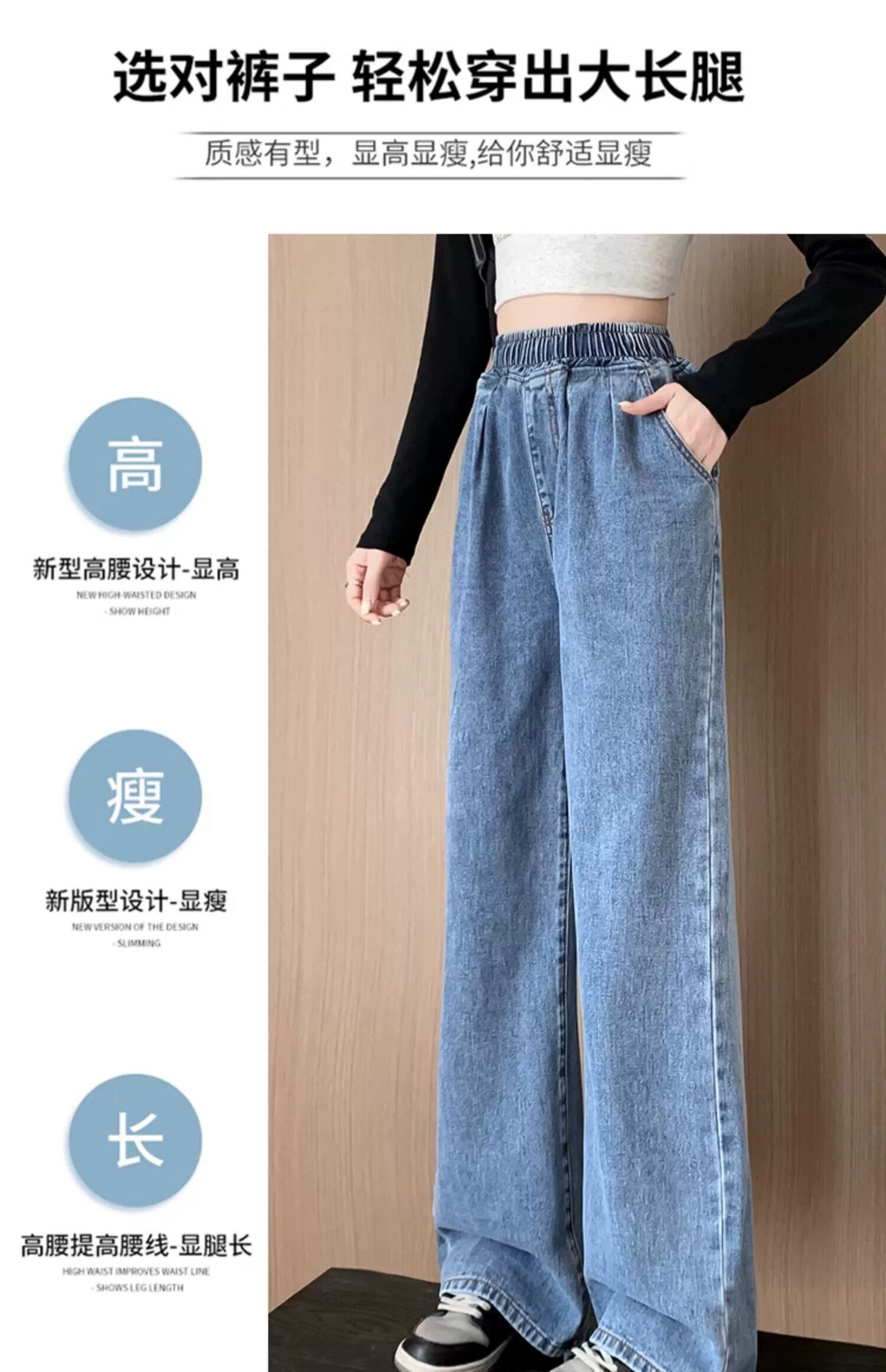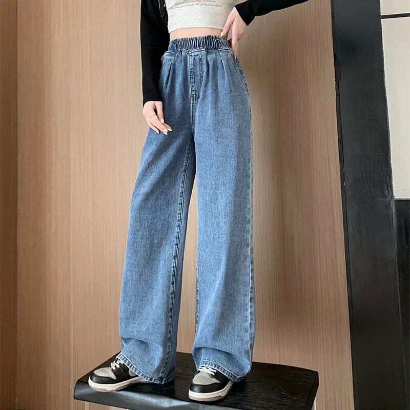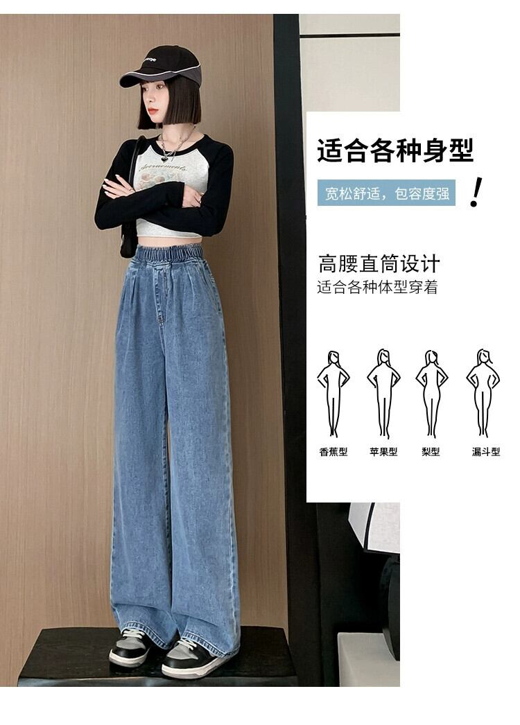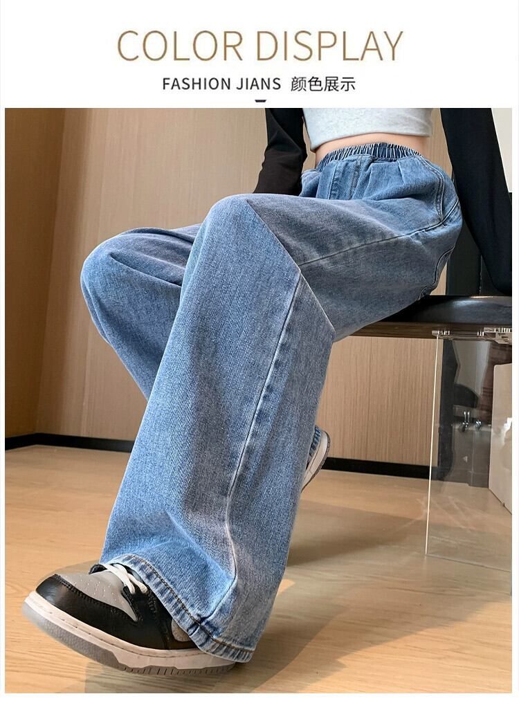 プラスサイズの女性の春の新スタイル 2023 スリム気質ワイドレッグパンツ脂肪ミリメートルシックなニッチ弾性ウエストジーンズ エラスティック 伸縮 大きめサイズ スプリング 春物 ワイドパンツ 8884169246386116