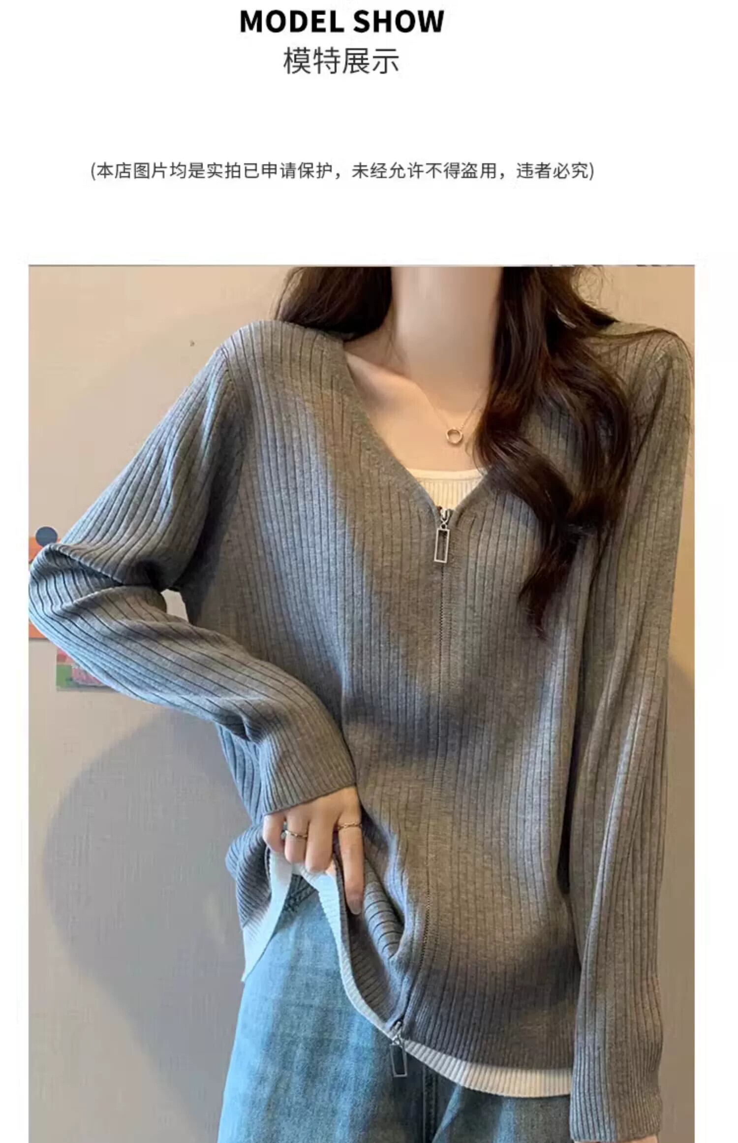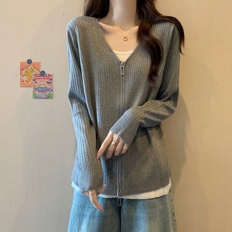 プラスサイズの女性のファット mm 春の新しいスタイル 2024 多用途腹カバー ジッパー トップス偽ツーピース ニッチ デザイン トップス 大きめサイズ スプリング 春物 8884198724762984