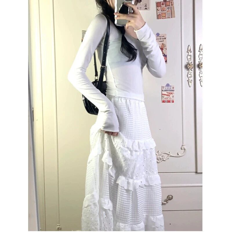 ホワイトスカート女性 2024 春の新ハイウエスト a ラインスカートケーキスカートデザインニッチかぎ針編みスカート スプリング 春物 Aライン 888411608230689