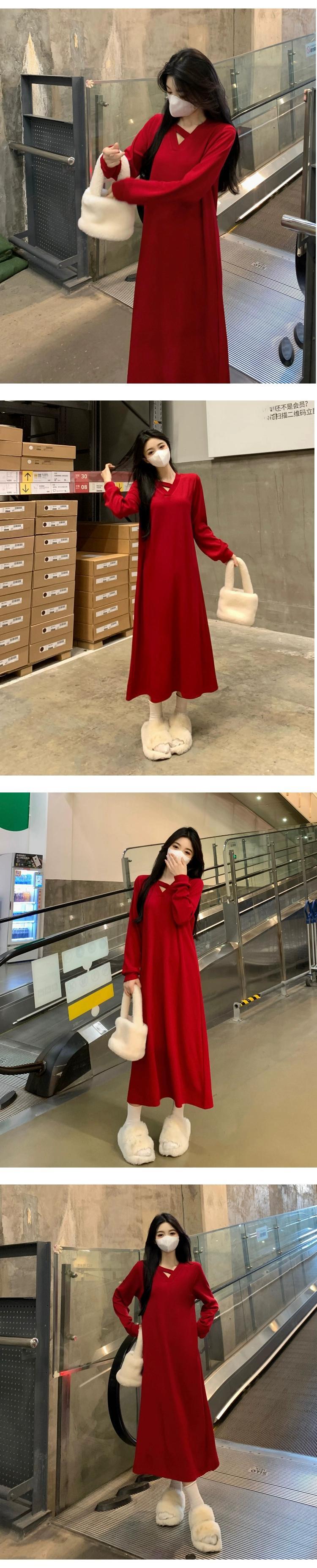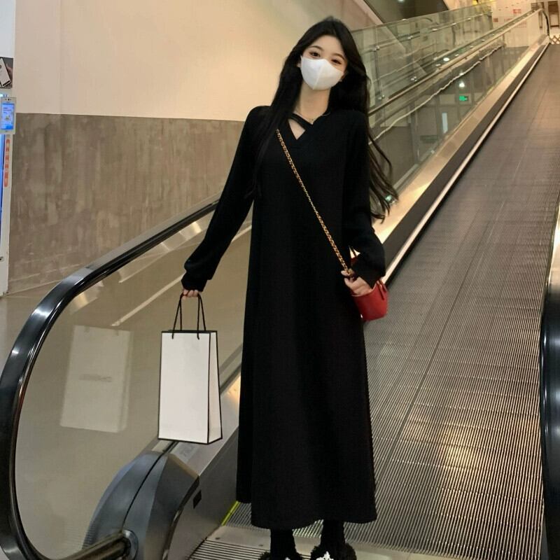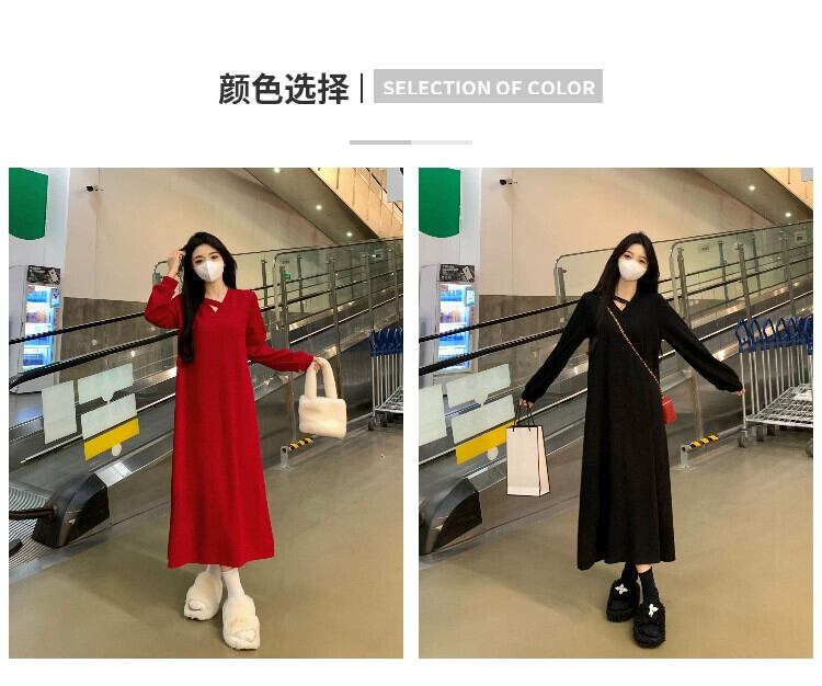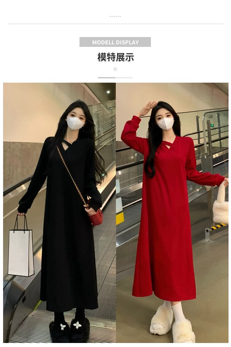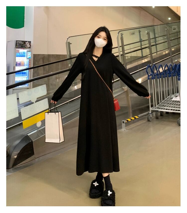 プラスサイズの婦人服脂肪 mm 春の新スタイル 2024 フレンチニット v ネックスカートファッショナブルな高度なウエスト痩身ドレス 大きめサイズ スプリング 春物 Vネック 8884163590890396