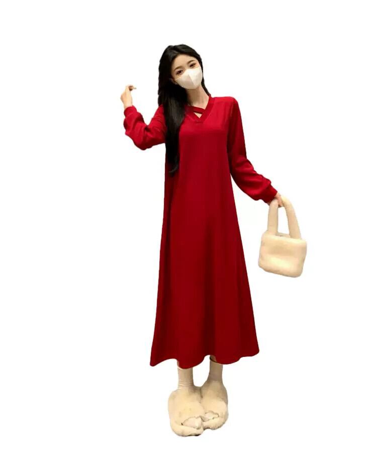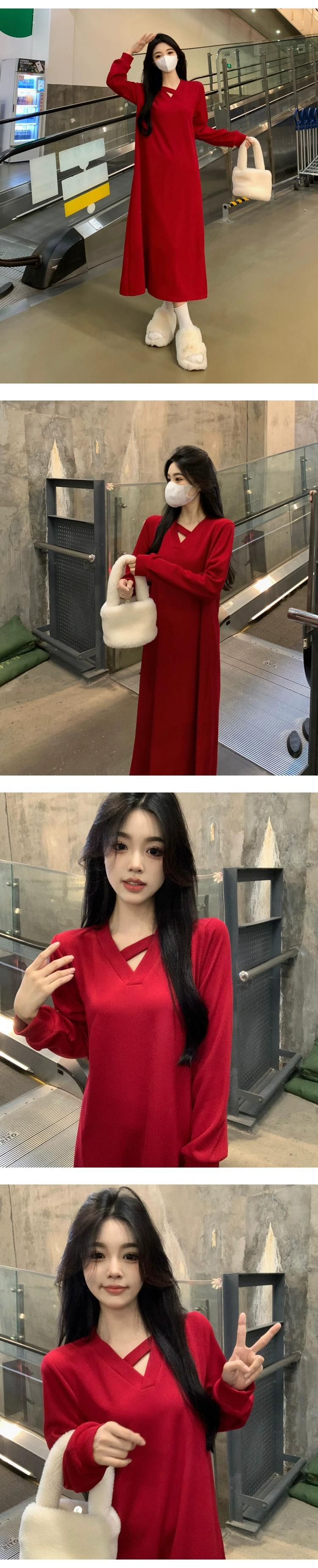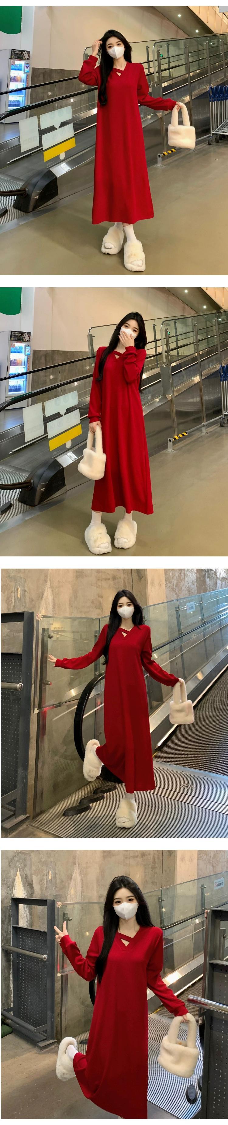 プラスサイズの婦人服脂肪 mm 春の新スタイル 2024 フレンチニット v ネックスカートファッショナブルな高度なウエスト痩身ドレス 大きめサイズ スプリング 春物 Vネック 8884163590890396
