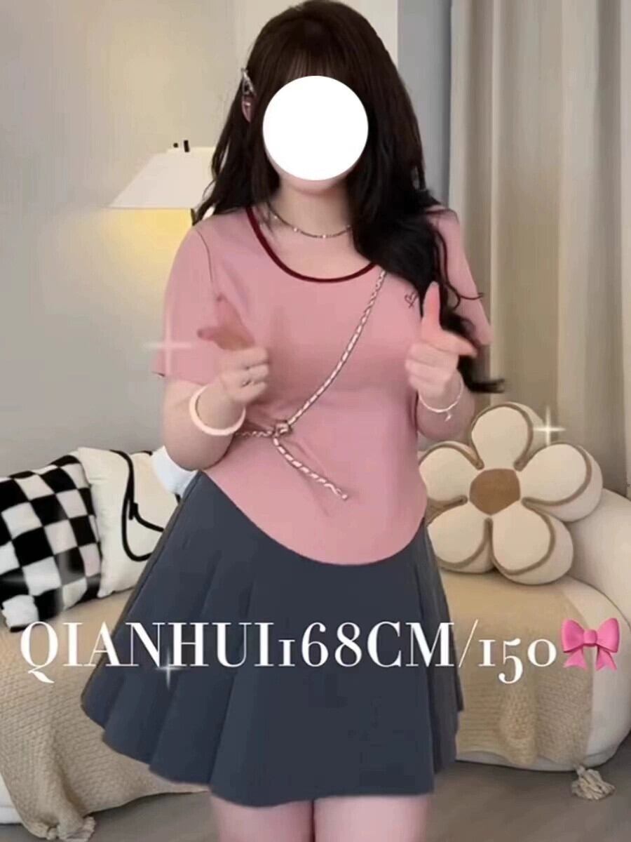 プラスサイズの婦人服 2024 夏の新しい脂肪 mm 腹をカバーするトップス、肌のコントラストを隠す色右肩スクエアネック半袖 T シャツトレンディ 大きめサイズ サマー 夏物 Tシャツ スクウェア 8884114511449054