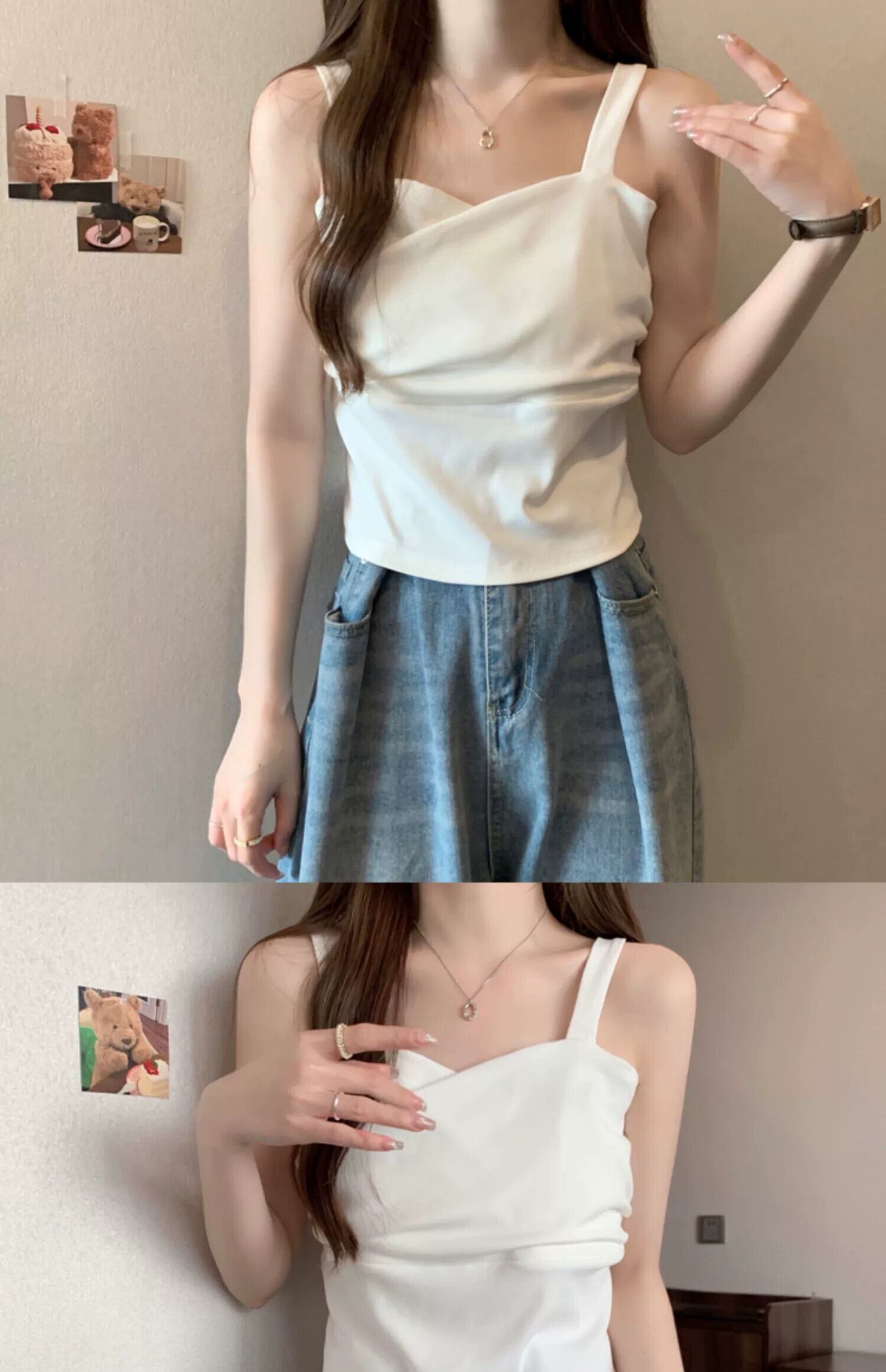 プラスサイズの女性の春と夏のスーツは、美しい背中を細くする短い底のトップを着て、小さな白いキャミソールを着ています。 ショート ホワイト 大きめサイズ スプリング 春物 サマー 夏物 8884129072884393