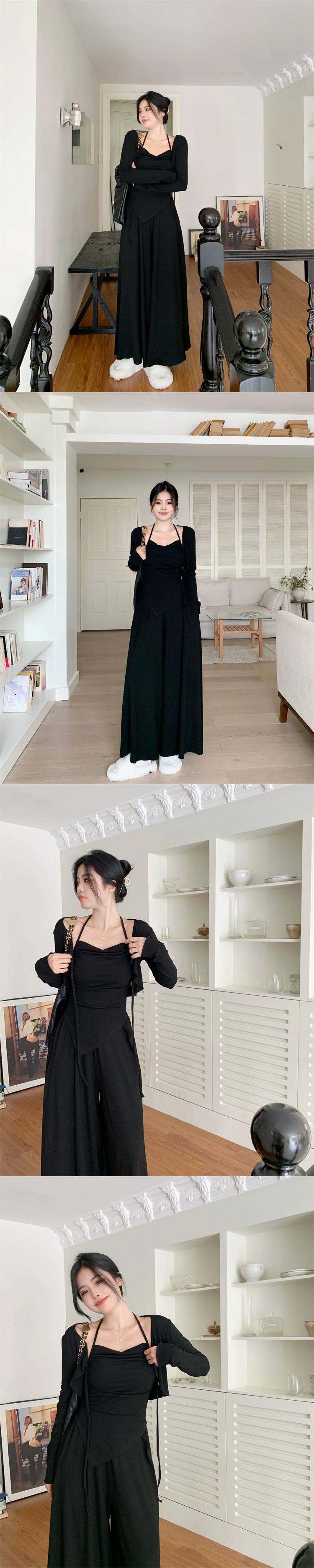 色:オートミール3点セット,黒のスリーピース
