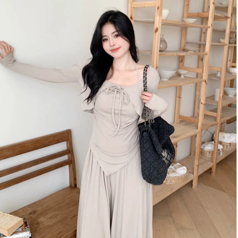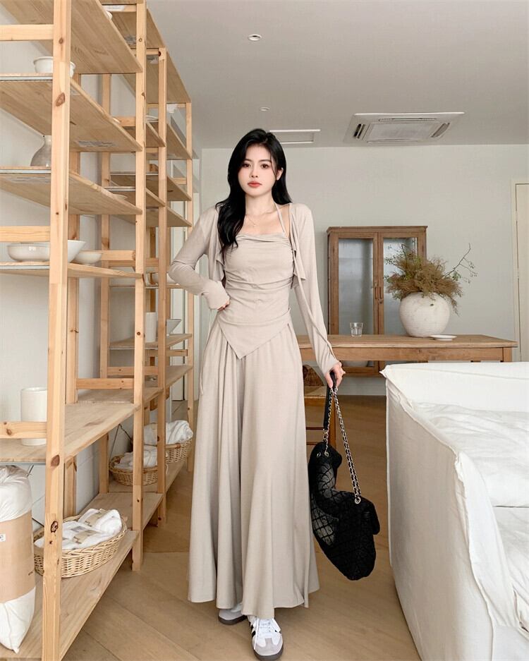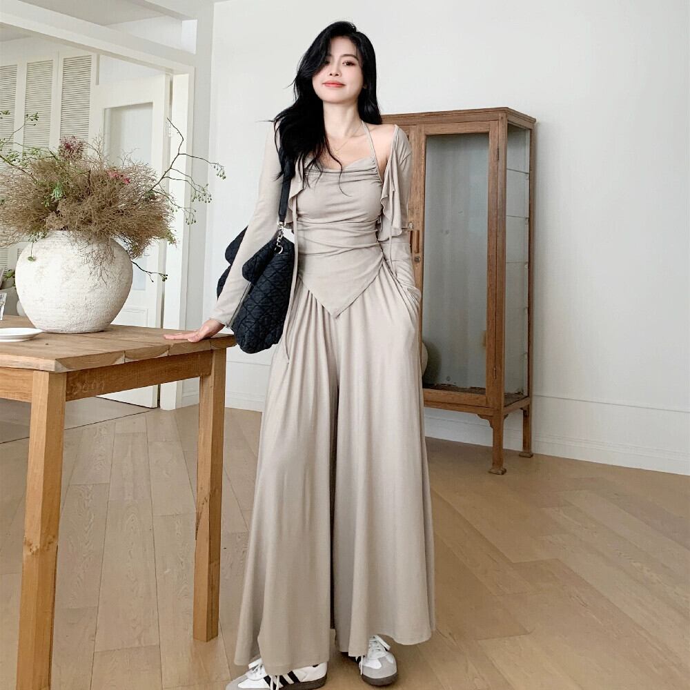 プラスサイズ脂肪のハイエンド怠惰なスタイル不規則なサスペンダー日焼け止めカーディガン女性の春のドレープワイドレッグパンツスーツ 大きめサイズ スプリング 春物 8884117306647505