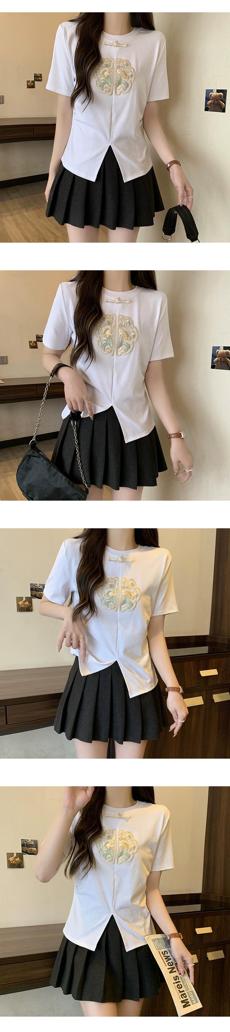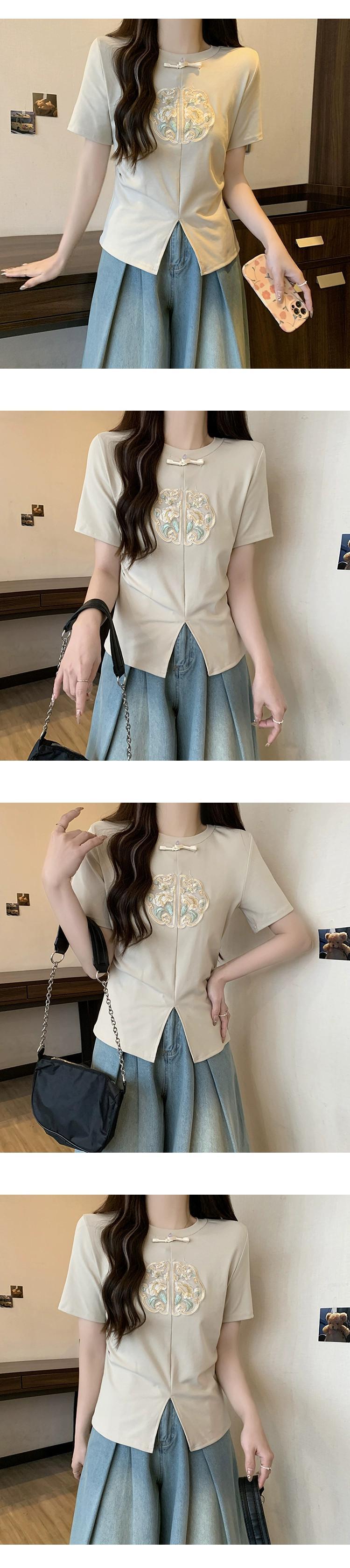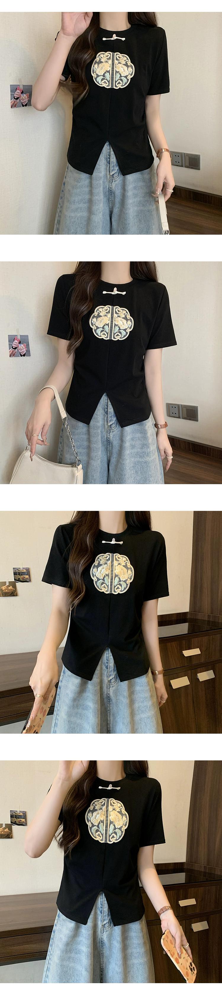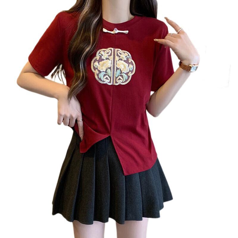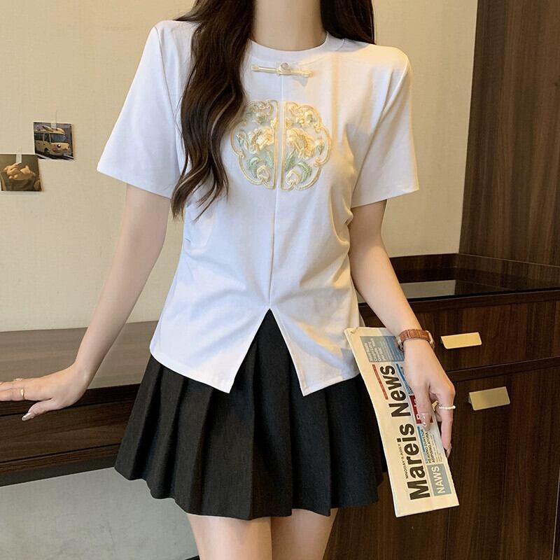 プラスサイズの女性の脂肪 mm 夏の新スタイル 2024 国民風新中国風の重工業刺繍多用途 T シャツ年齢を減らす気質トップ 大きめサイズ サマー 夏物 Tシャツ 8884112982032851