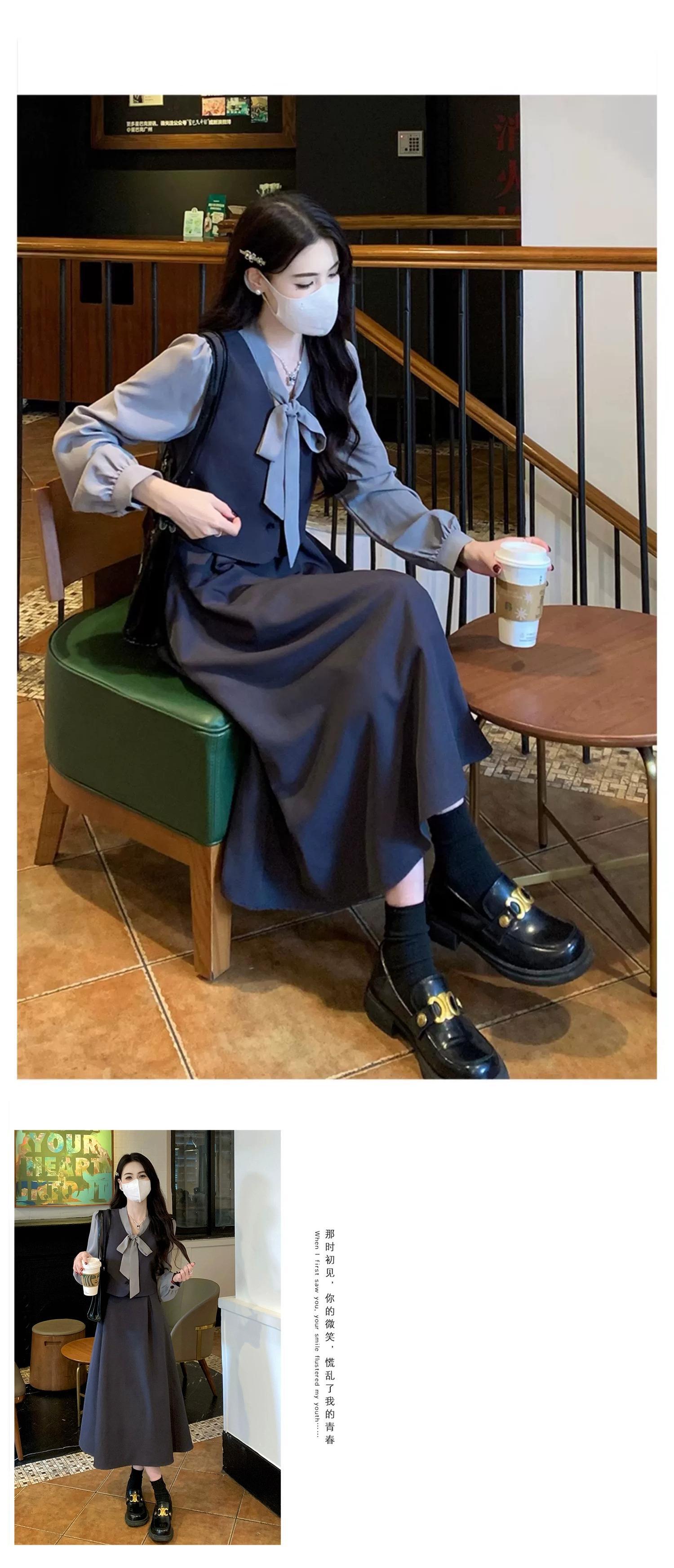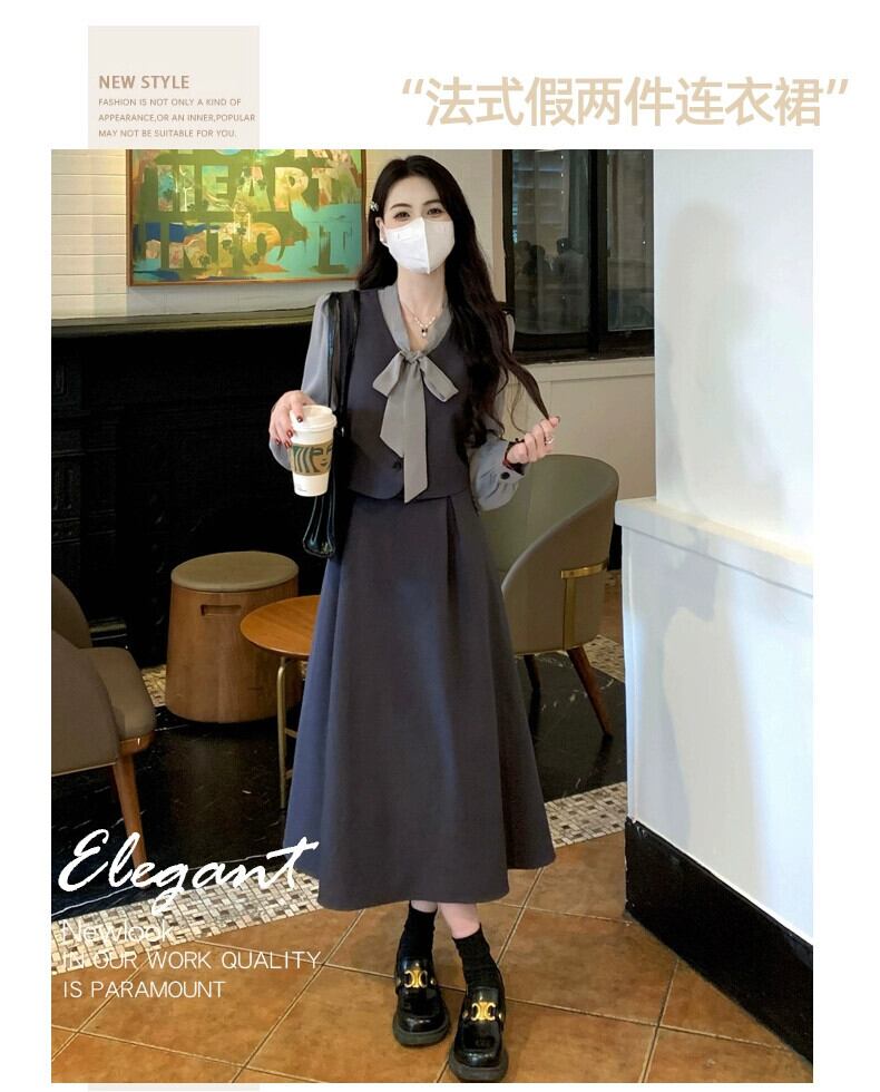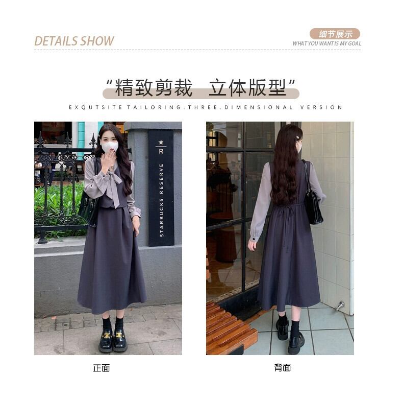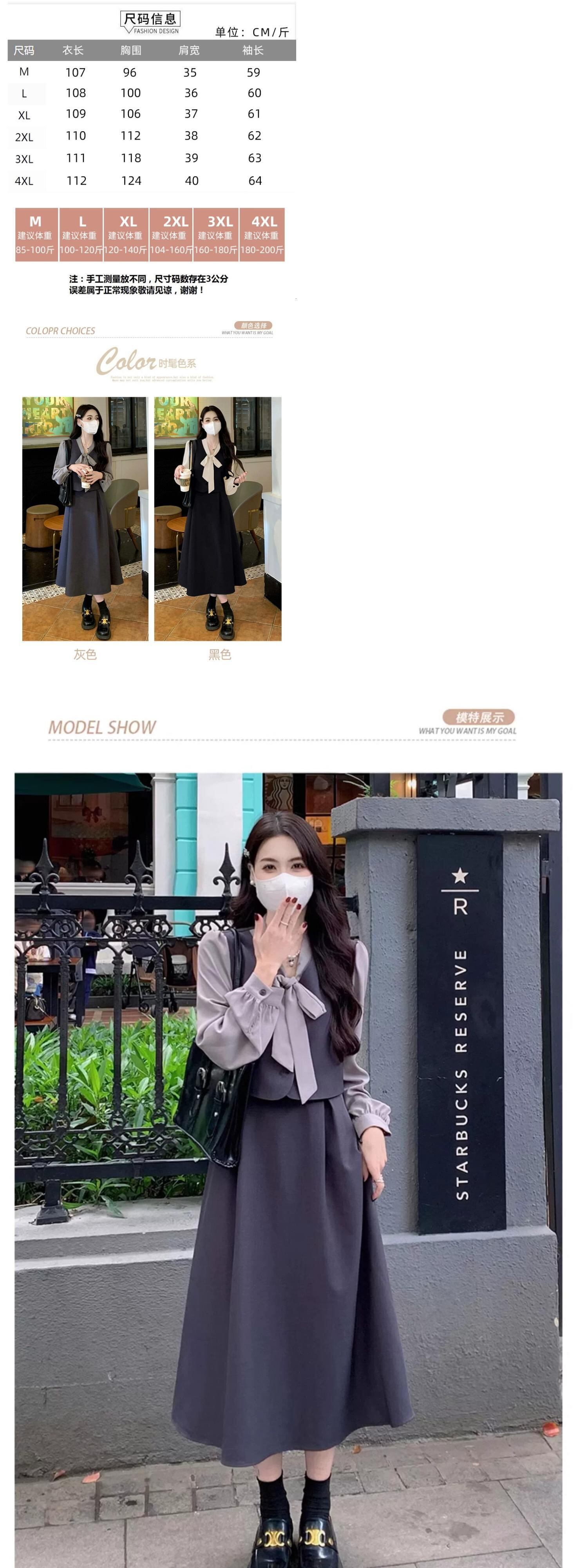 プラスサイズの女性の脂肪 mm 春の新スタイル 2024 気質とハイエンド A ラインスカートストラップ偽ツーピース痩身ドレス 大きめサイズ スプリング 春物 Aライン 8884156130611586