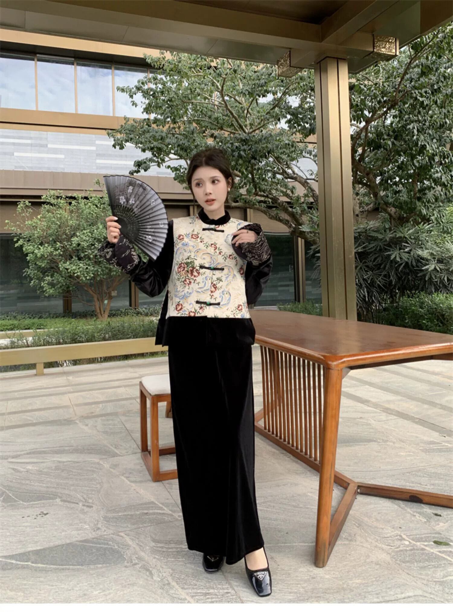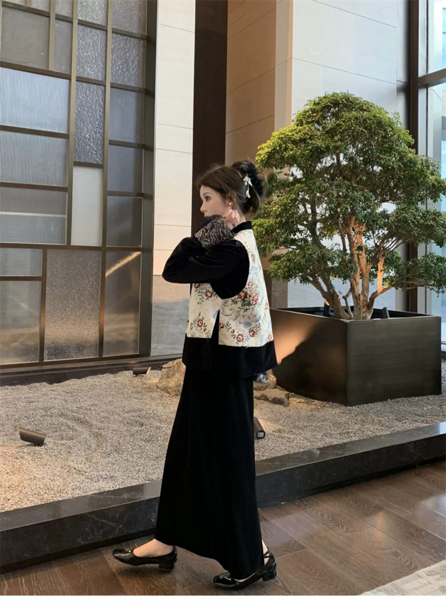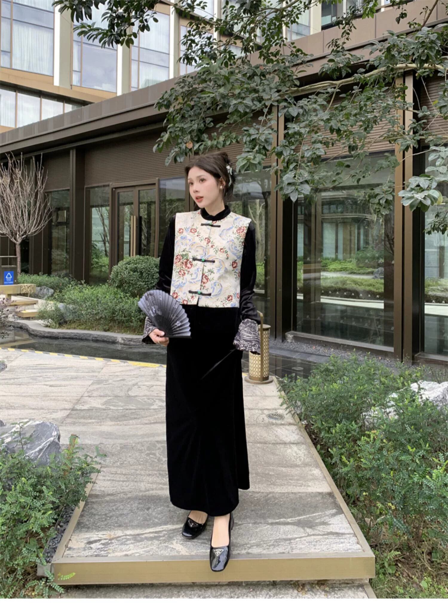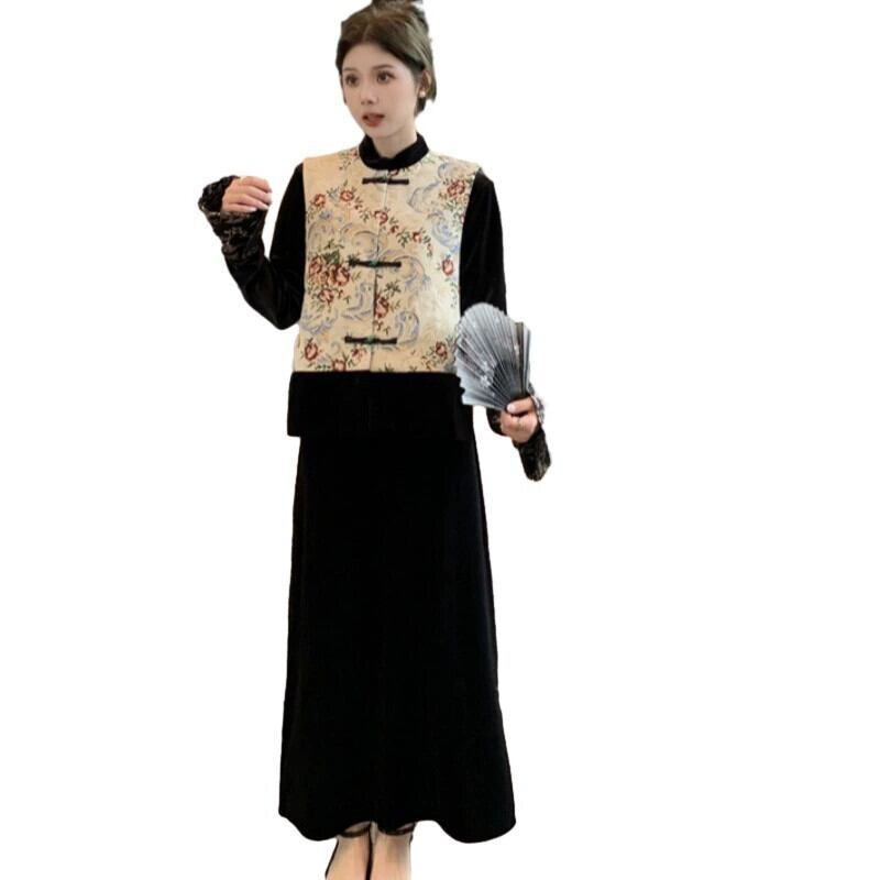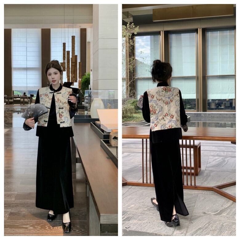プラスサイズの婦人服脂肪ミリメートル 2024 春の新国家スタイル新中国風のジャカードディスクバックルベストベルベットドレススーツ 大きめサイズ スプリング 春物 8884174486872942