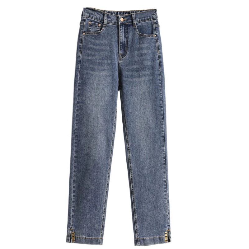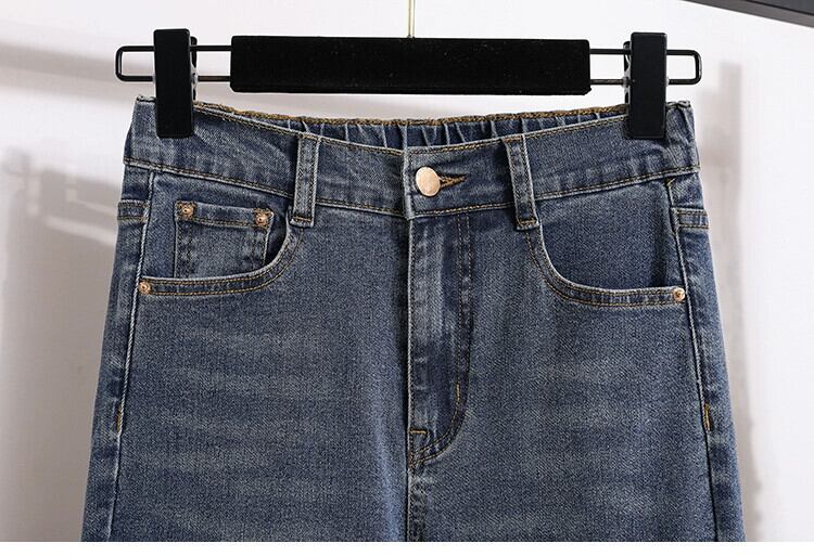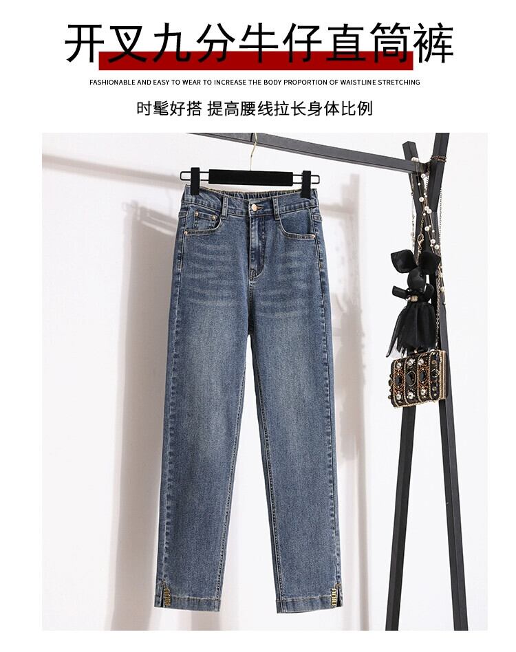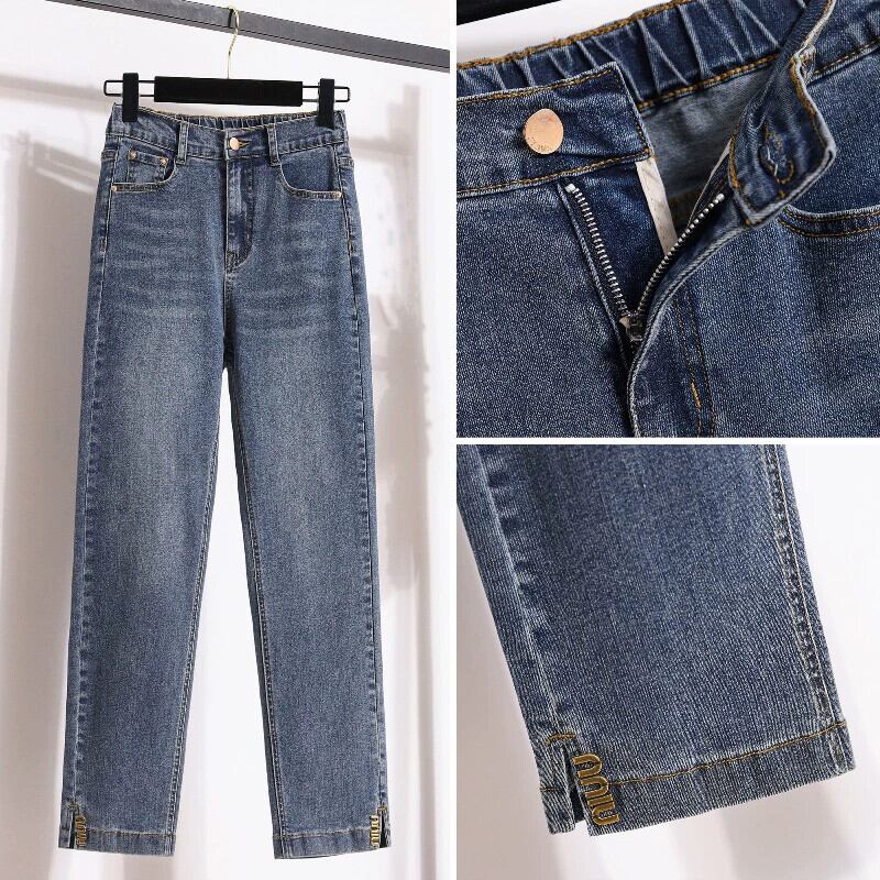 プラスサイズの婦人服 2024 春の新ハイウエストストレートジーンズファット MM ファッション弾性 9 点タバコチューブパンツトレンディな ハイウェスト エラスティック 伸縮 大きめサイズ スプリング 春物 8884186921983073