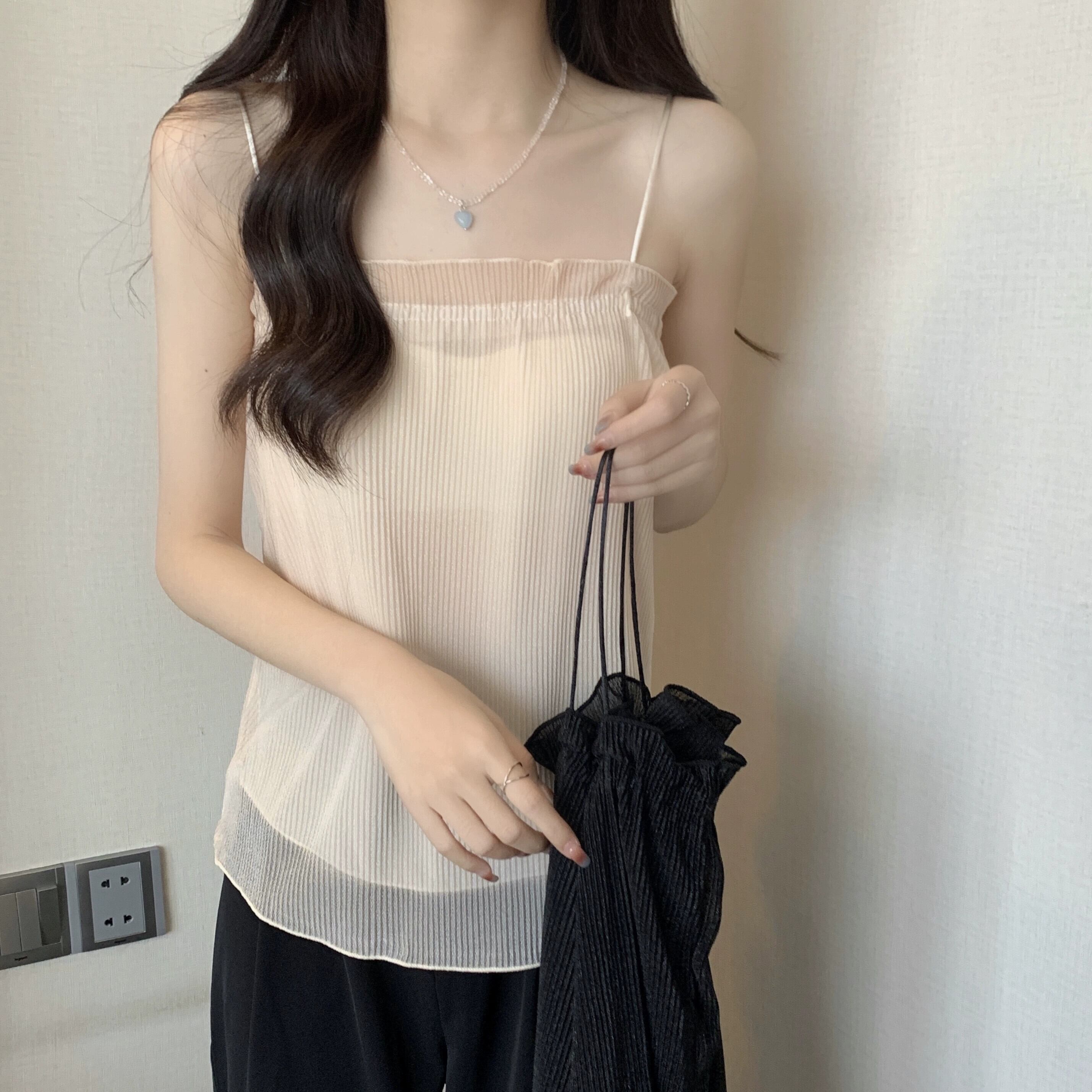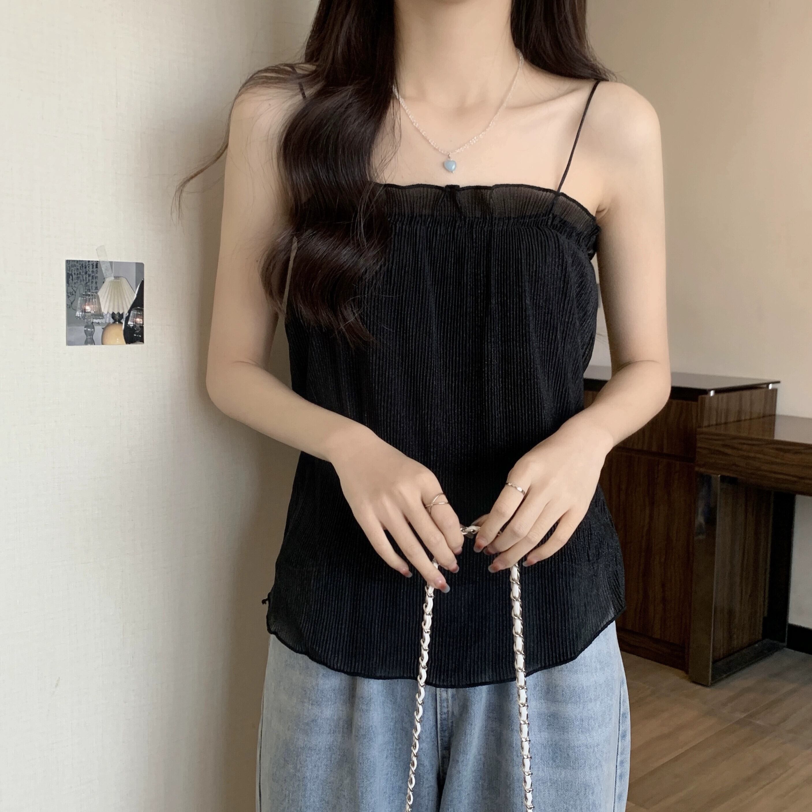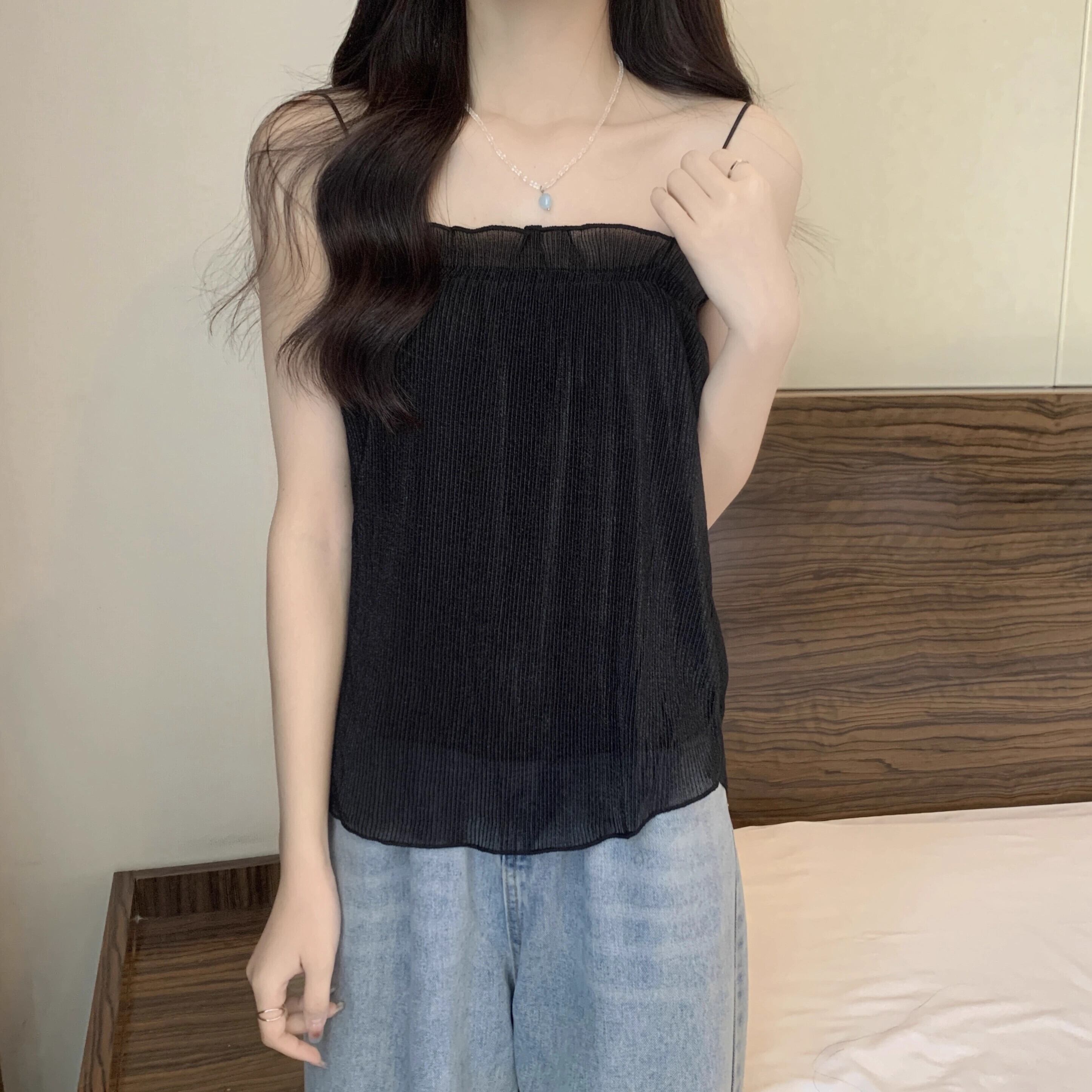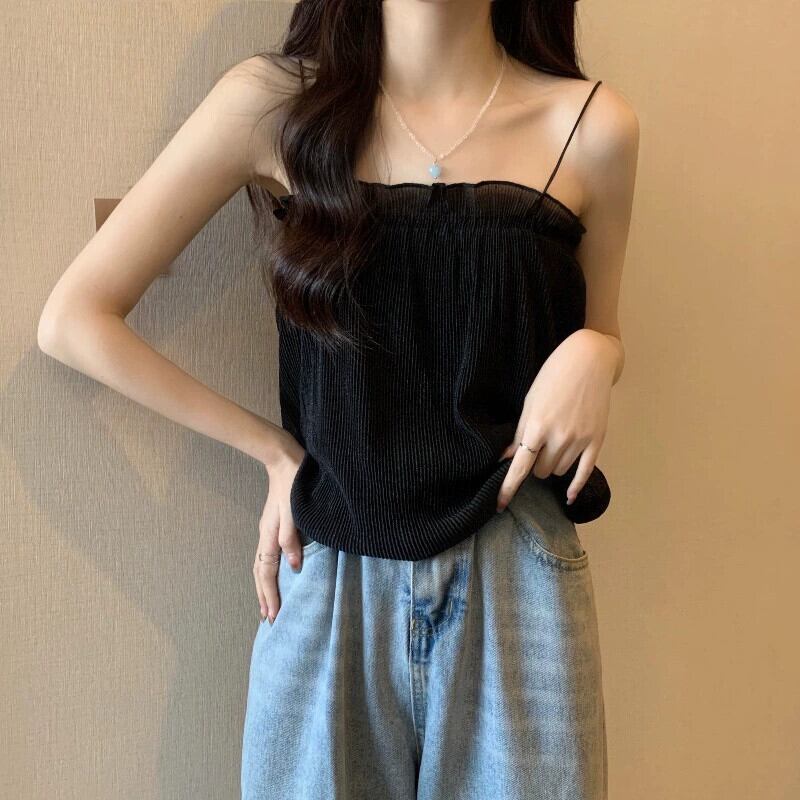 プラスサイズの婦人服ファット mm 夏の新スタイル 2024 甘い菌エッジシフォンチューブトップ小さなスリング年齢を減らし、小さなベストを着る 大きめサイズ 大人ガーリー スウィート キュート カジュアル サマー 夏物 8884152321122489