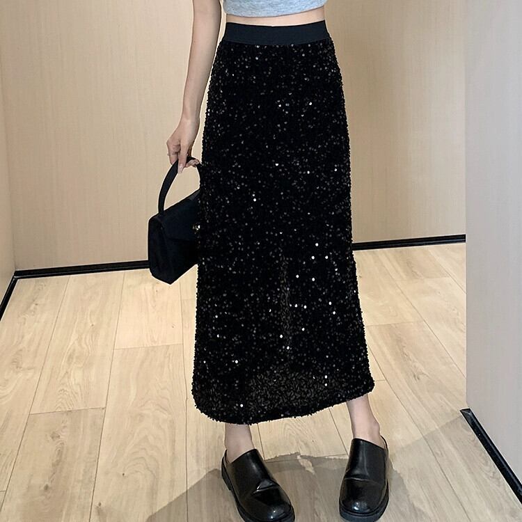 大きいサイズやや太めmm 2024春新作ハイウエストスパンコールスカートレディース今年人気のAラインロングスカート 大きめサイズ スプリング 春物 8884159764227243
