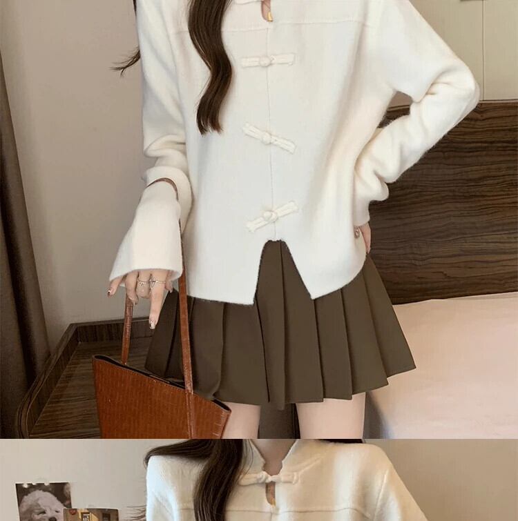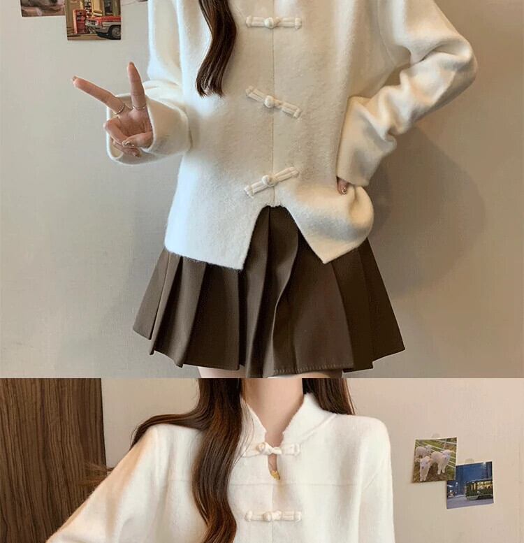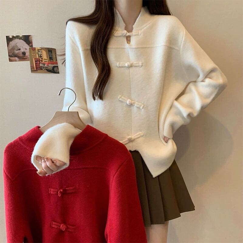 プラスサイズの婦人服ファット mm 冬の新 2023 中国風バックル国民風トップス肥厚不規則な多目的セーター 大きめサイズ ウィンター 冬物 8884120203114473