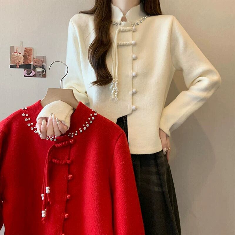プラスサイズの女性の脂肪ミリメートル春の新スタイル 2024 新しい中国風の国家スタイルスタンドカラーセータープレートバックルカバー肉ニッチトップス 大きめサイズ スプリング 春物 8884142430949230