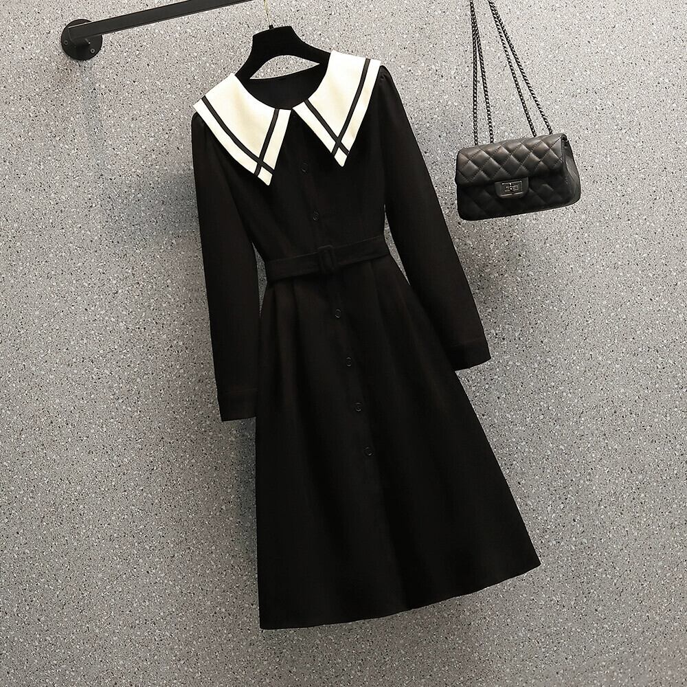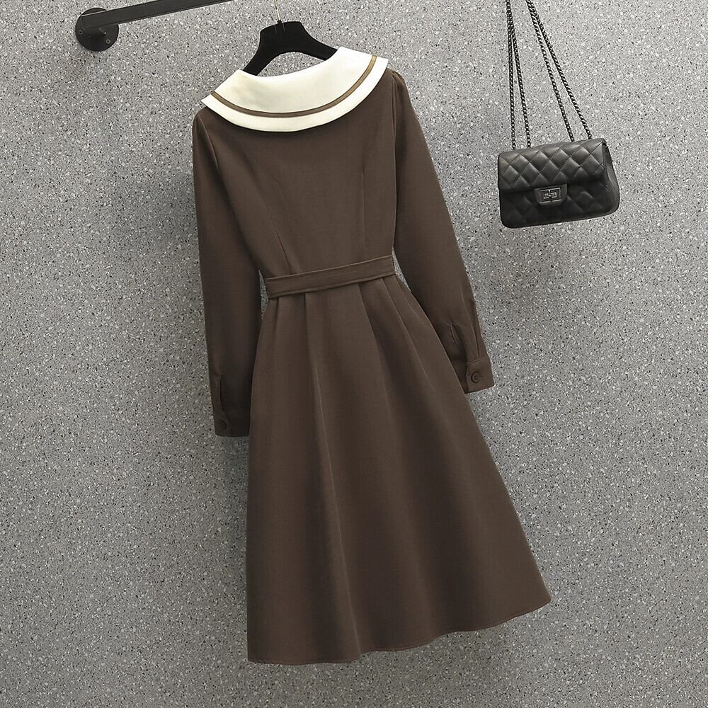 プラスサイズの婦人服脂肪 mm 春の新スタイル 2024 フランスのファッション人形の襟ロングスカートウエスト痩身多目的ドレストレンド 大きめサイズ スプリング 春物 8884151438523284