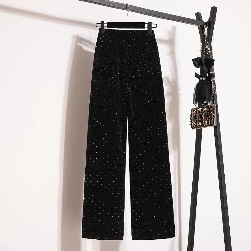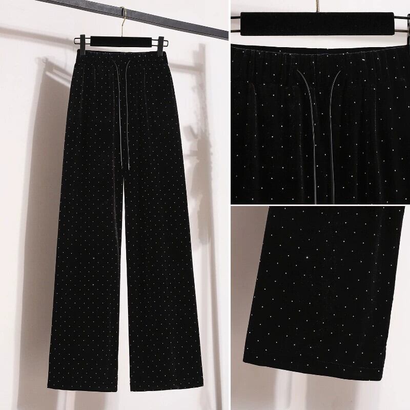 プラスサイズの婦人服ファット mm 春の新スタイル 2024 スタイル多用途弾性ウエストカジュアルシンプルなハイウエストワイドレッグパンツズボン ハイウェスト エラスティック 伸縮 大きめサイズ スプリング 春物 ワイドパンツ 8884122015520343