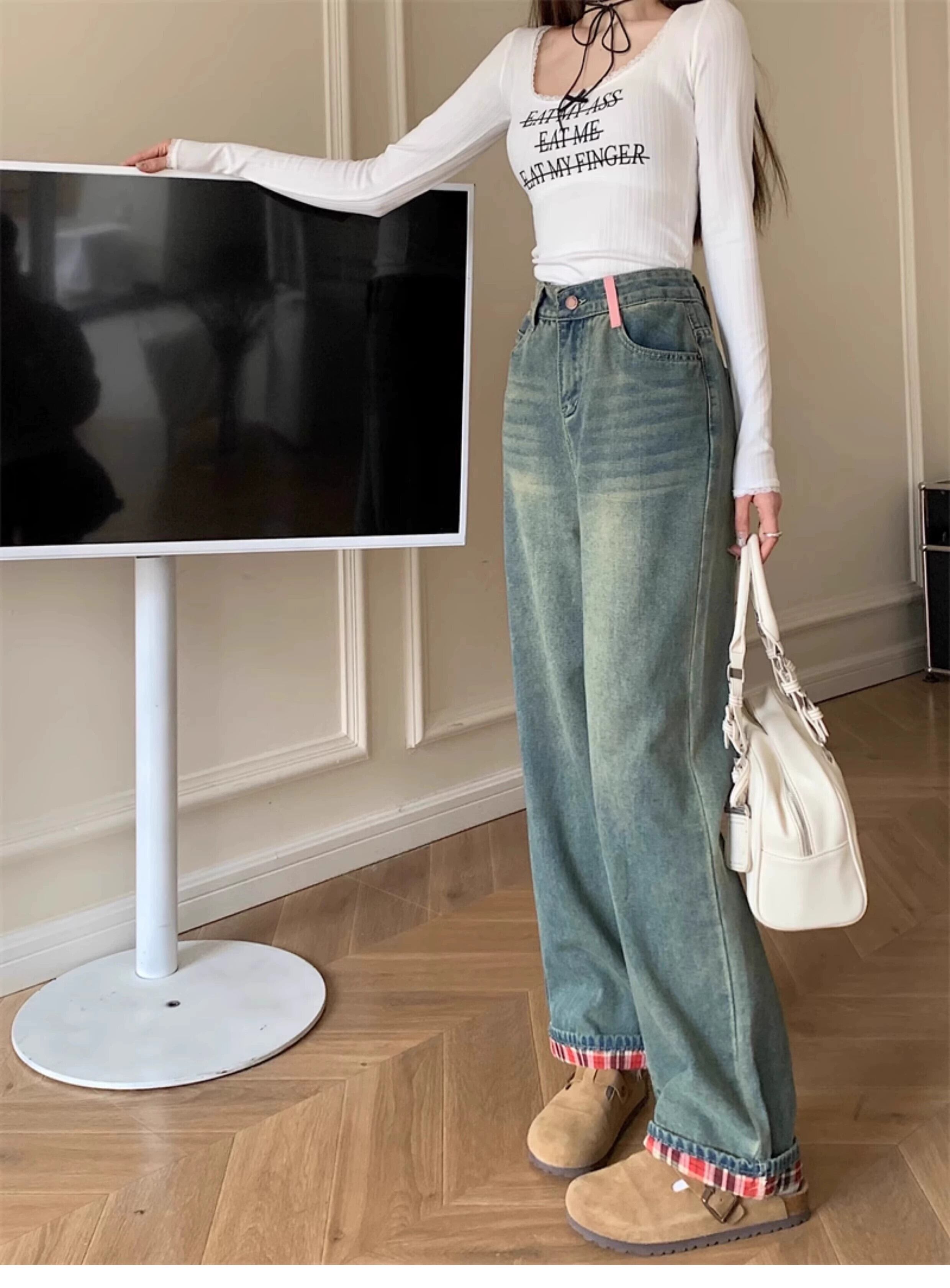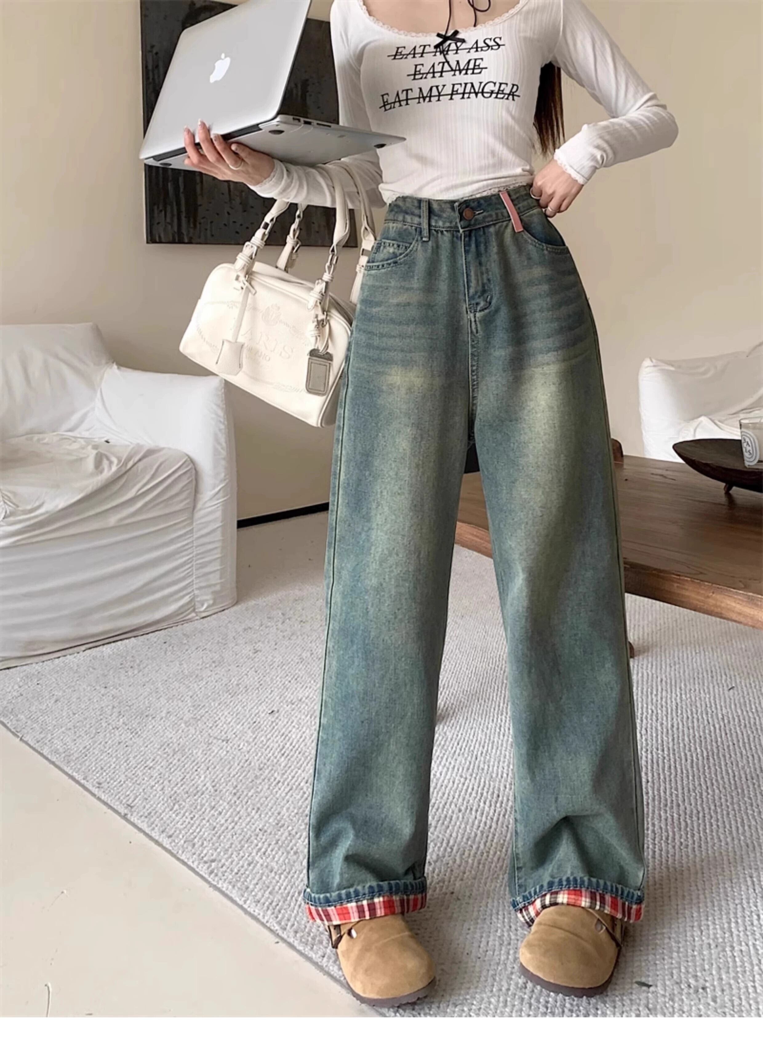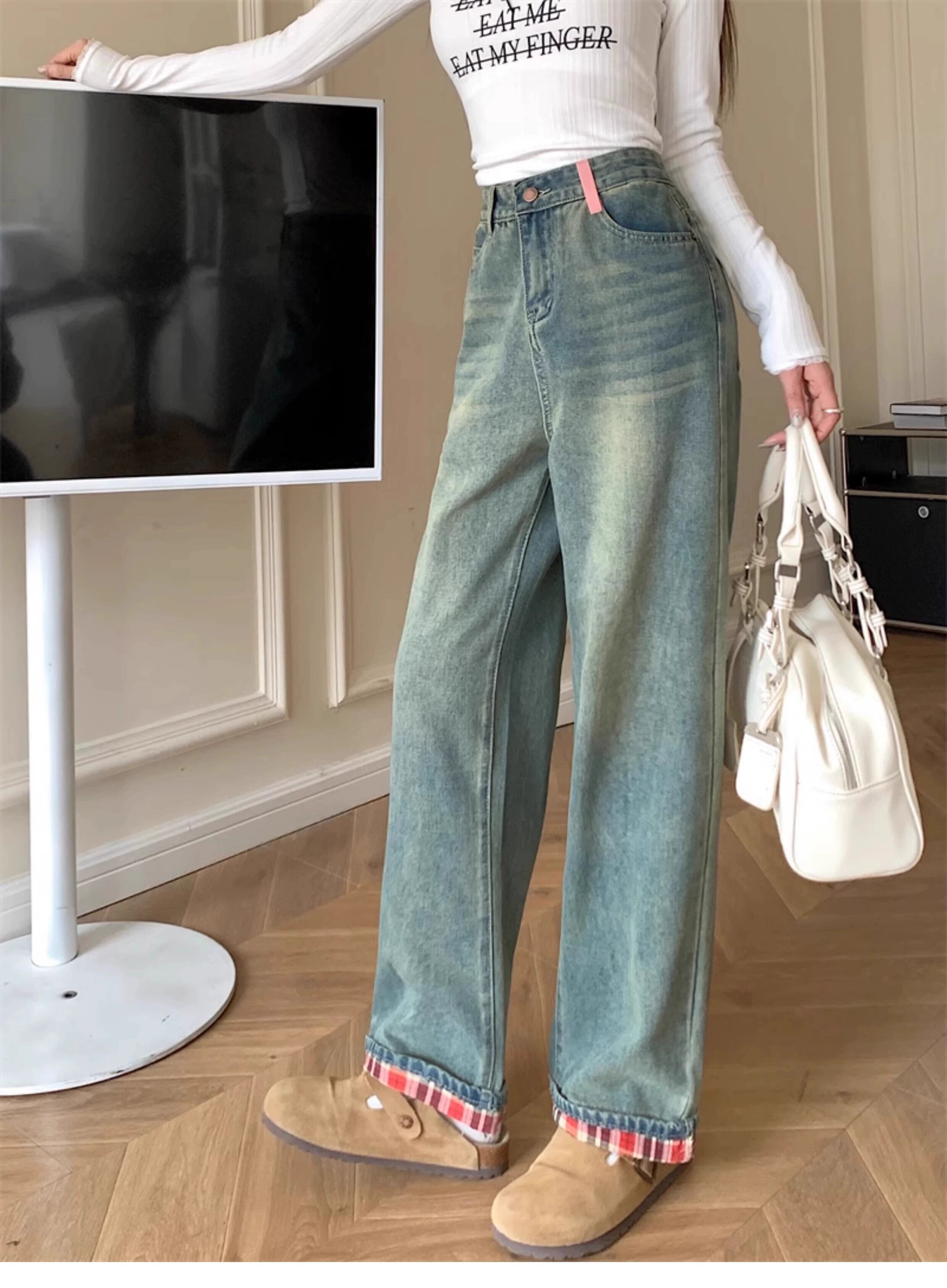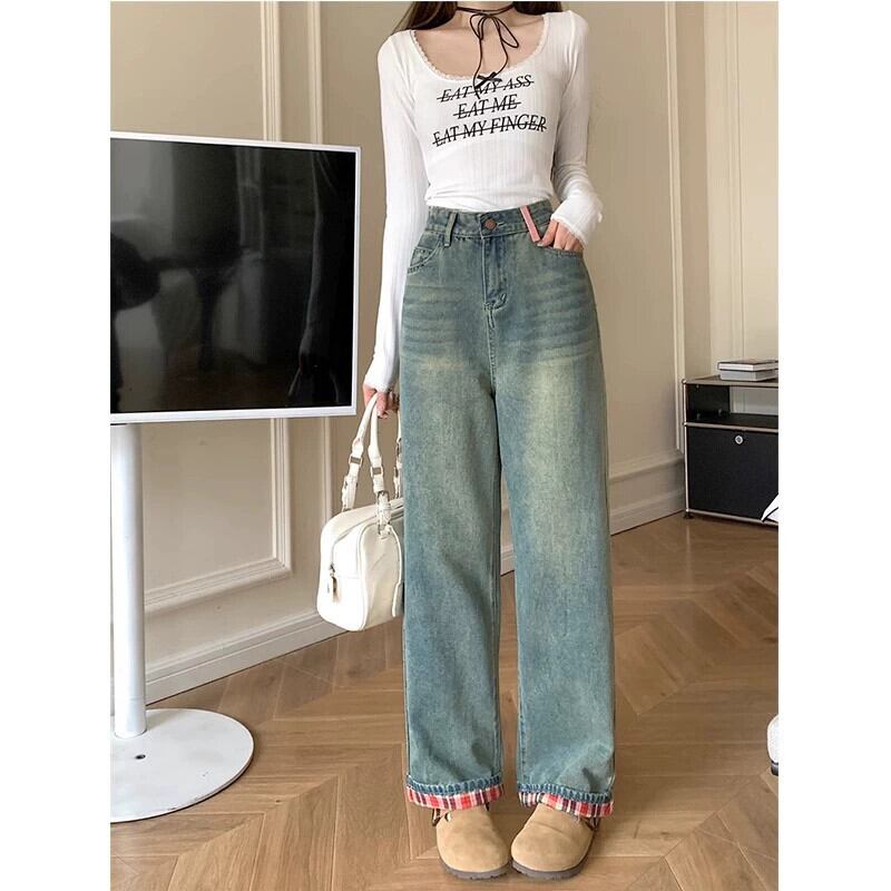 プラスサイズの婦人服ファットミリメートル夏の新スタイル 2024 レトロストレートジーンズハイウエストスリム洋ナシ型ボディズボン女性 ハイウェスト 大きめサイズ サマー 夏物 8884167350998313