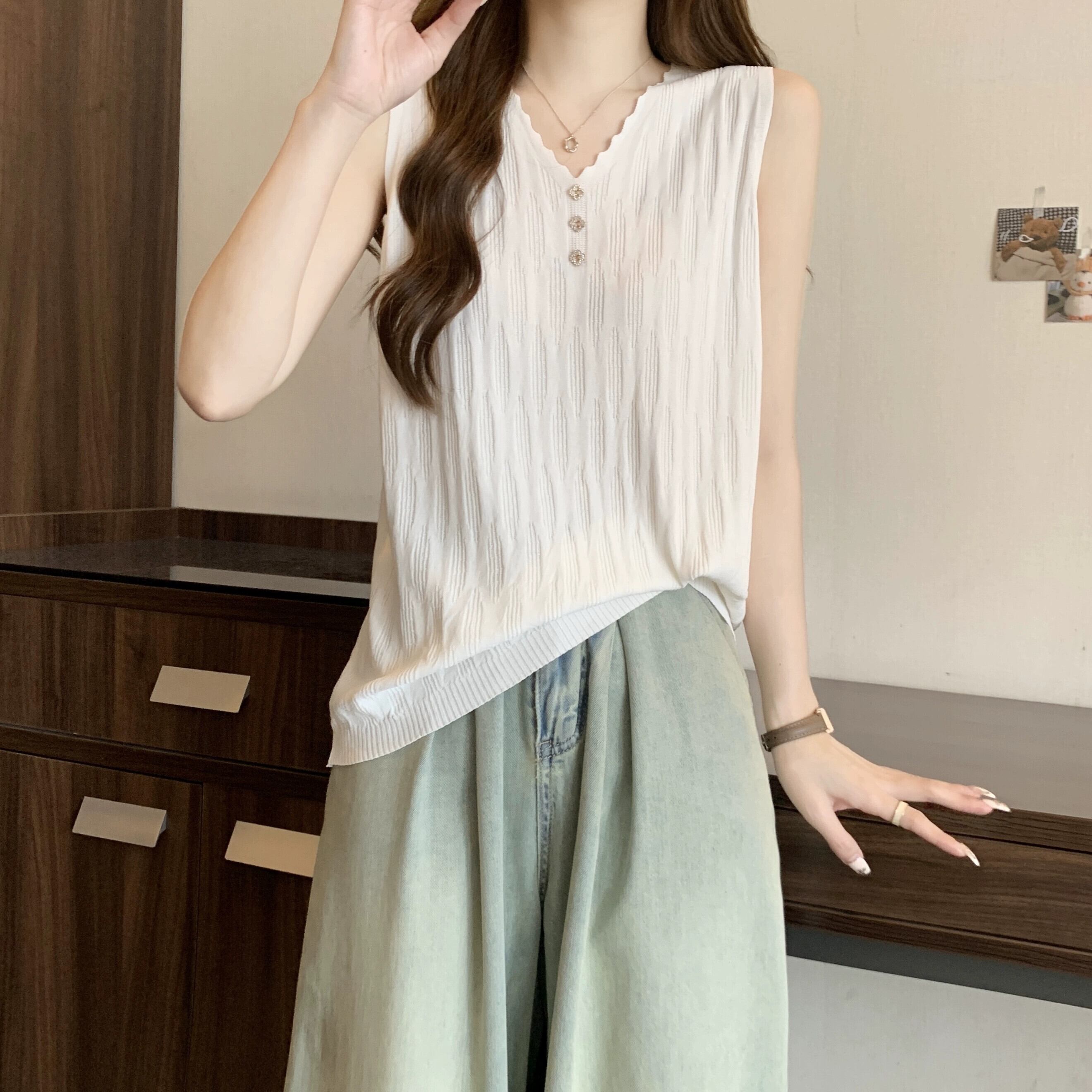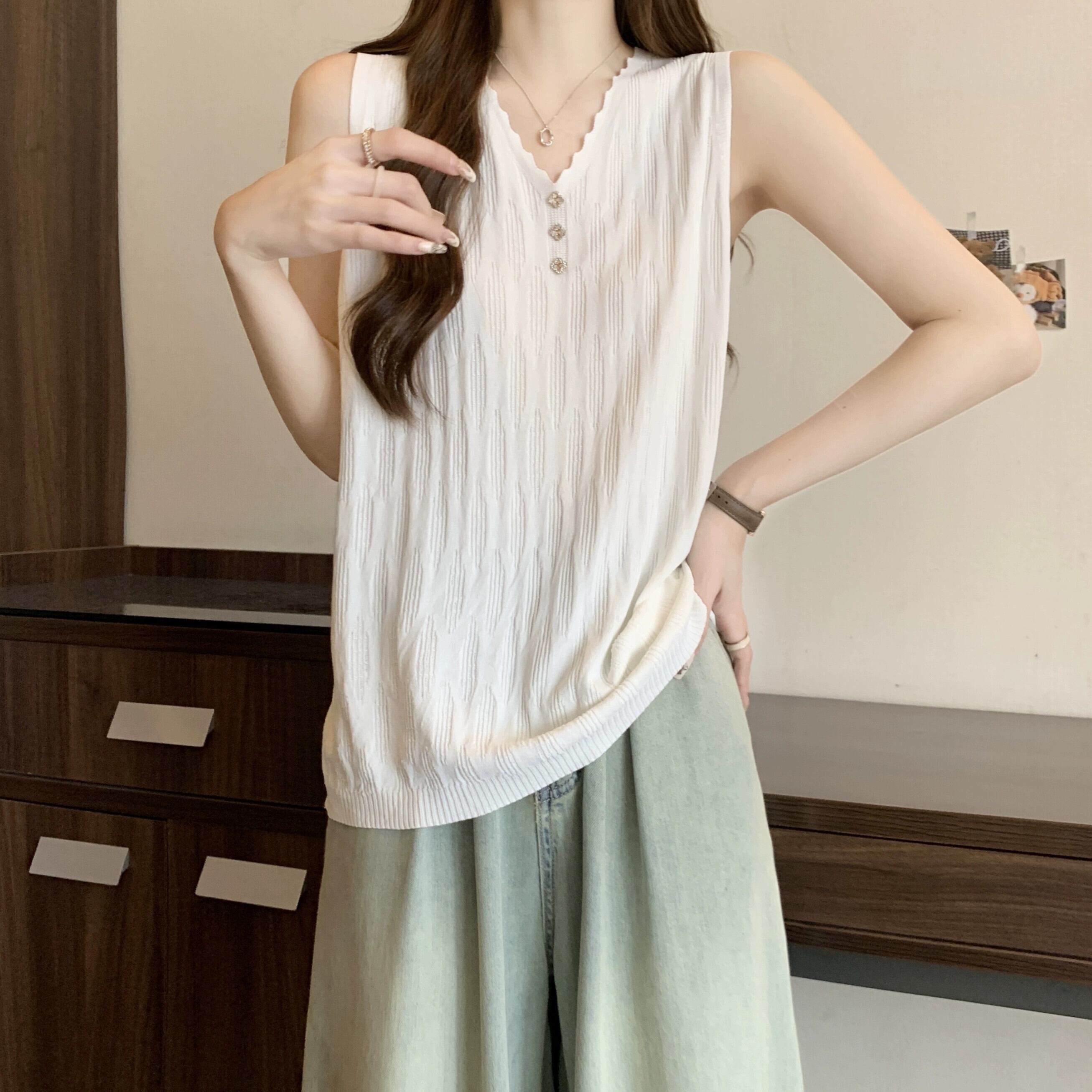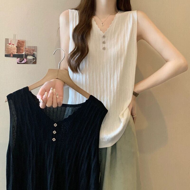 プラスサイズの婦人服ファット mm 春の新しいスタイル 2024 シンプルな通勤多用途ニットベストサスペンダーとファッショナブルなトップ 大きめサイズ スプリング 春物 8884150112245595