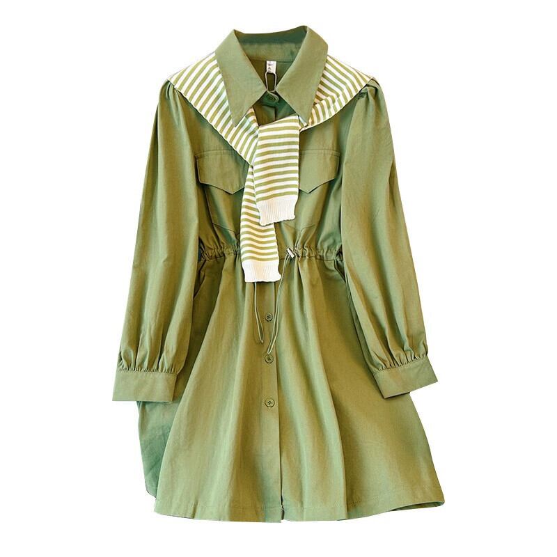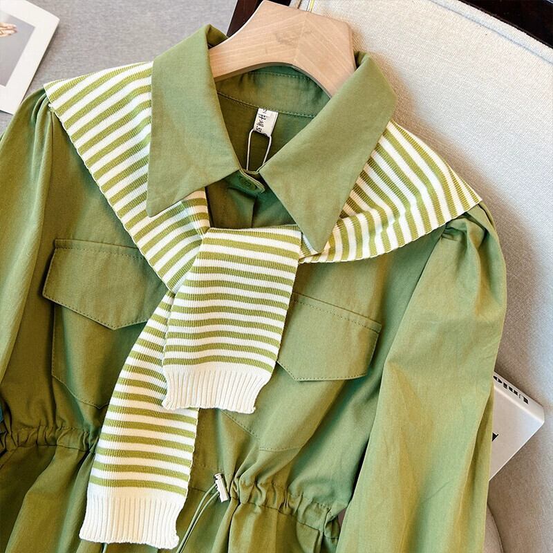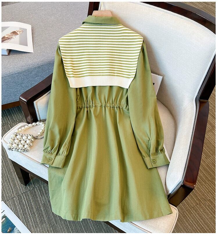 プラスサイズの女性の脂肪ミリメートルファッショナブルな年齢低減ドレス春の新 2024 巾着フレンチウエスト痩身シャツスカート 大きめサイズ スプリング 春物 8884165257867003