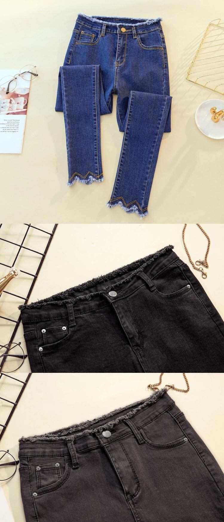 プラスサイズの婦人服 2024 ファットシスター春の新多用途ジーンズハイウエストスリム痩身小足 9 点パンツ 大きめサイズ スプリング 春物 8884150217492972