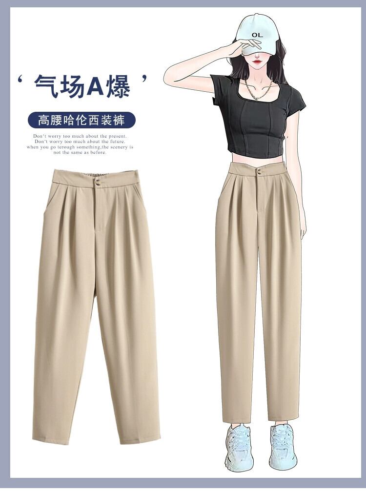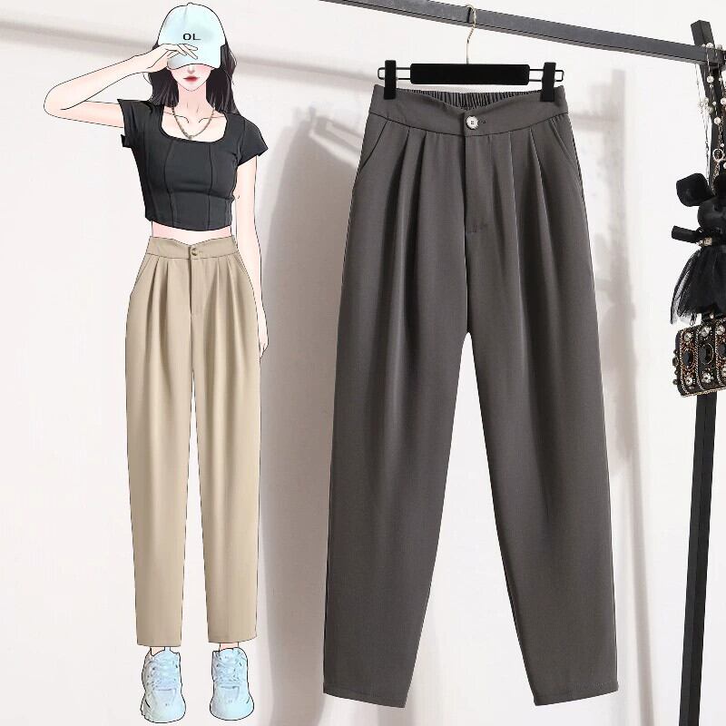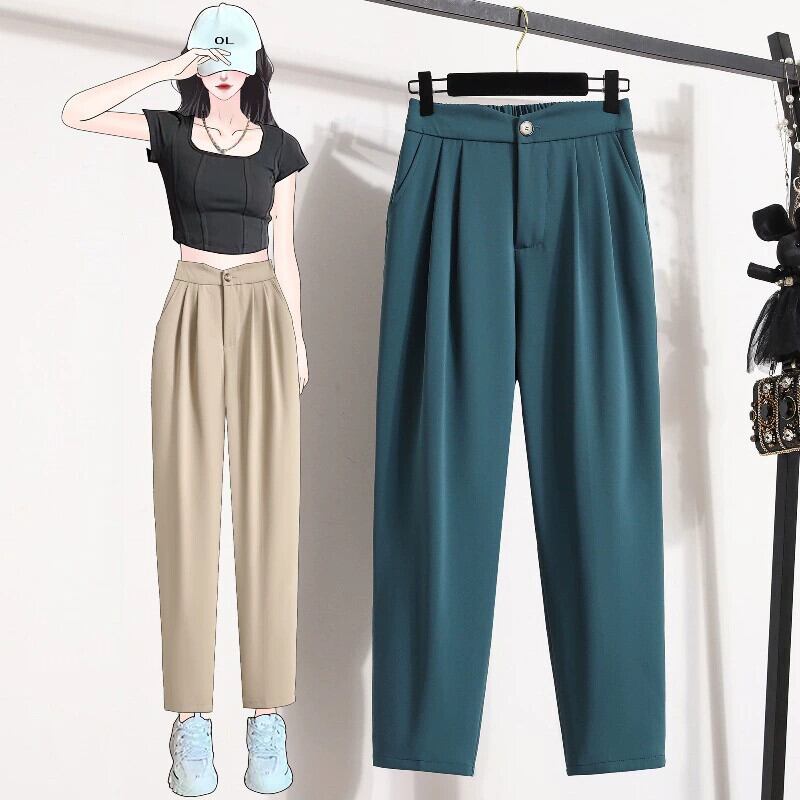 プラスサイズの婦人服ファットミリメートル春の新スタイル 2024 ハイウエストスリム 9 点パンツスーツパンツカジュアルパンツ小さな足ハーレムパンツ ハイウェスト 大きめサイズ スプリング 春物 8884183038833244