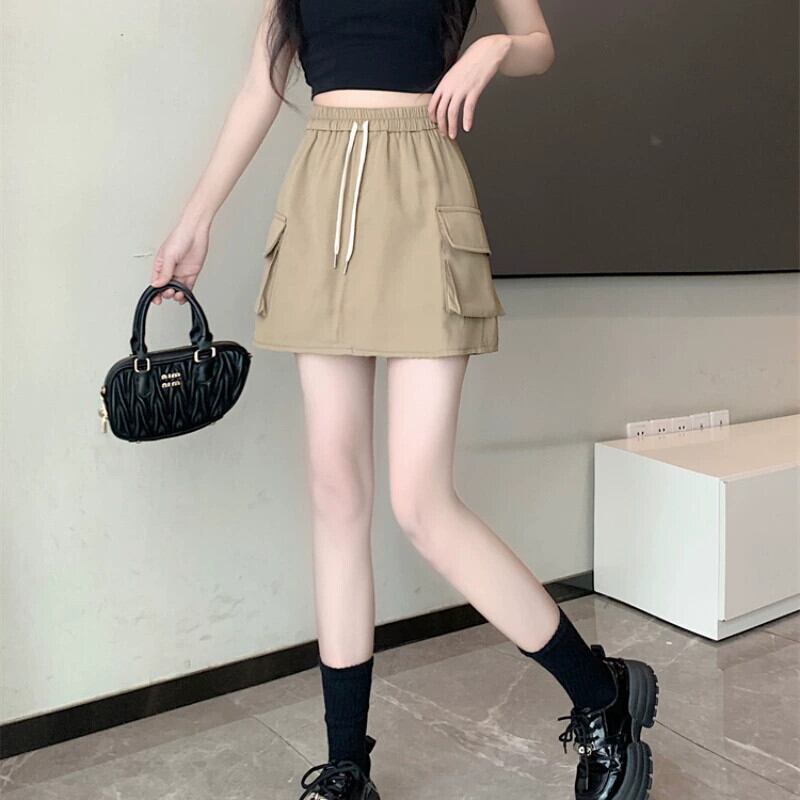 プラスサイズの婦人服ファットミリメートル春の新 2024 カジュアル作業服スカートスタイル弾性ウエスト多目的 a ラインスカート エラスティック 伸縮 大きめサイズ スプリング 春物 Aライン 8884124979264900