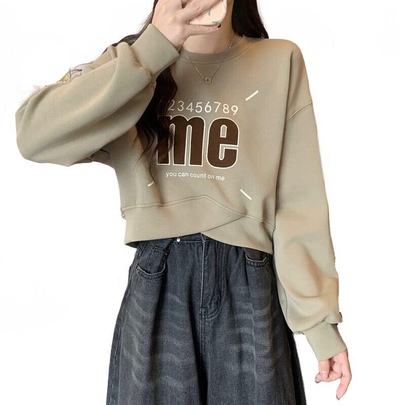 プラスサイズの女性の早春の新しいスタイルの短いお腹カバースウェットシャツ、太いmm、右肩、スリムなインナーウェア、ボトムシャツトップ ショート 大きめサイズ スプリング 春物 8884134250197164