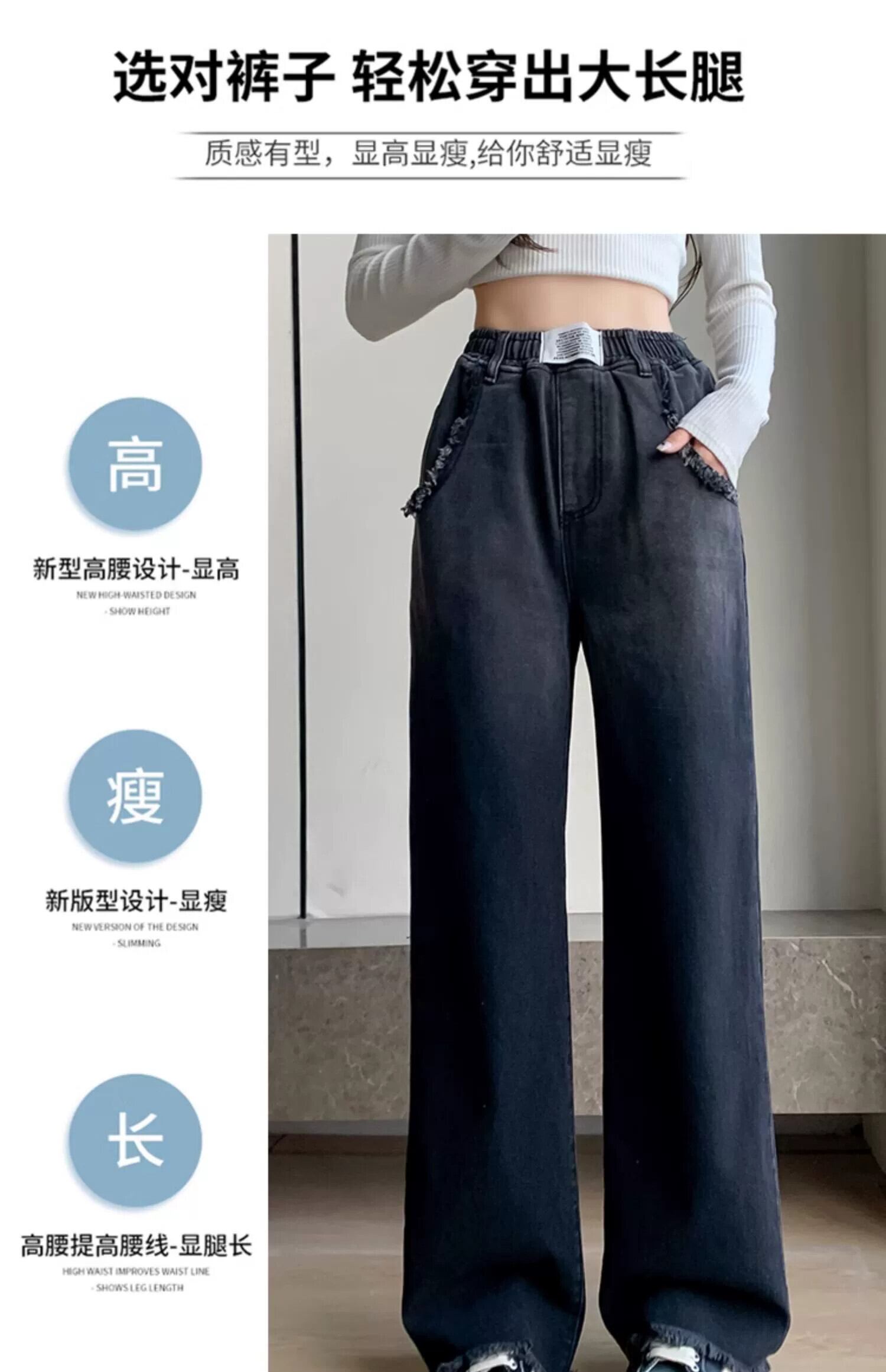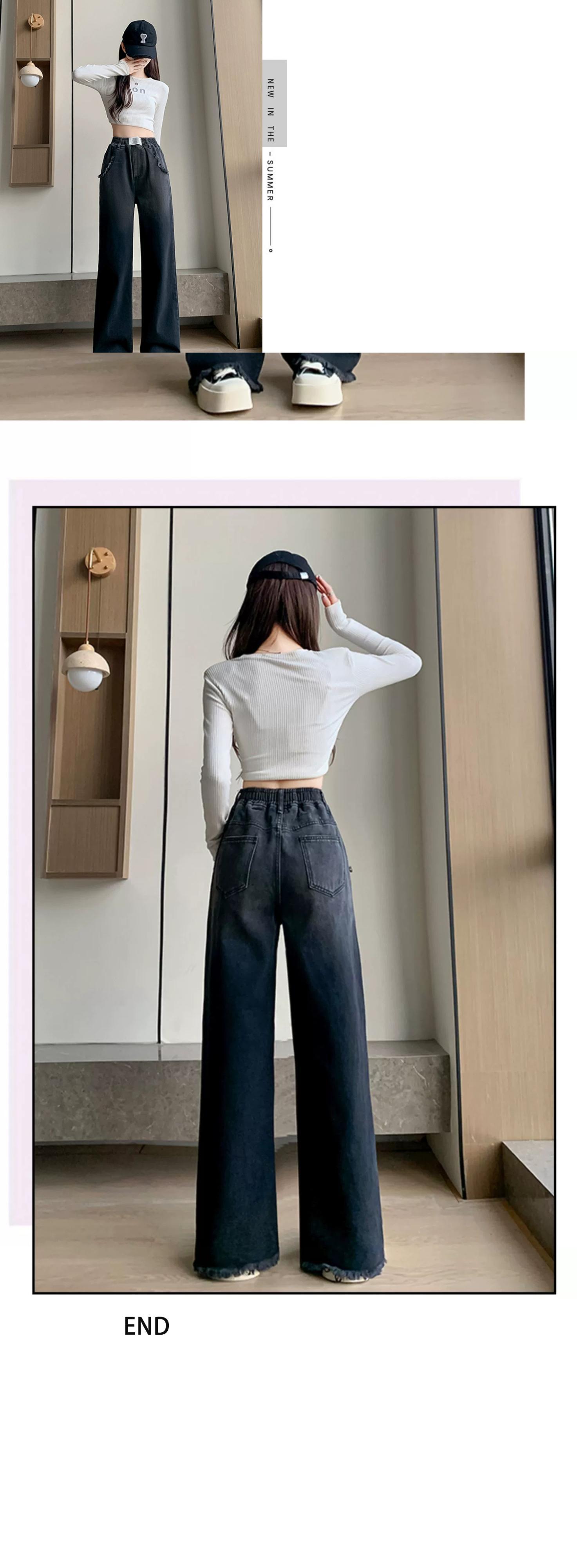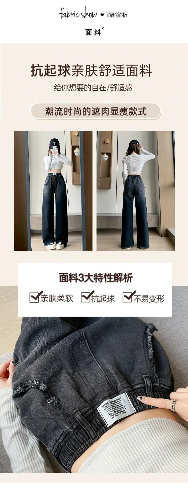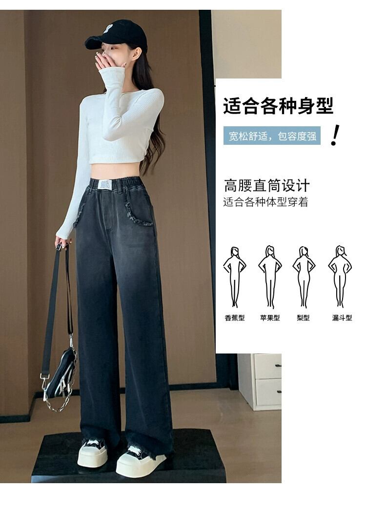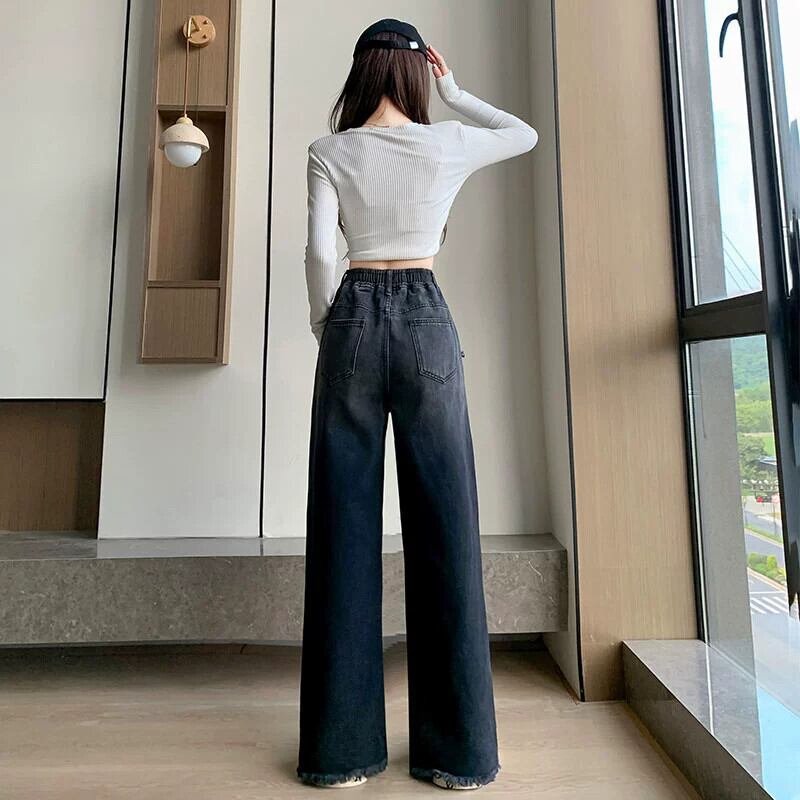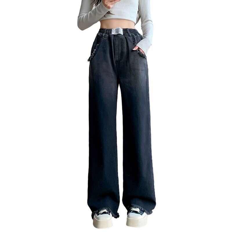 プラスサイズの女性の春の新スタイル 2023 ハイウエストグラデーション生エッジジーンズ脂肪 mm 気質弾性ウエストストレートパンツ ハイウェスト エラスティック 伸縮 大きめサイズ スプリング 春物 8884121577932722
