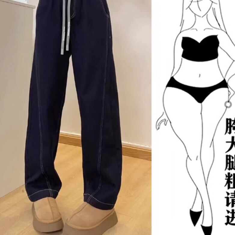 大きいサイズのルーズジーンズの女性のハイウエストワイドレッグシミターフロアモップパンツ2024春の新しいトレンディなパンツで太い脚と痩身 ハイウェスト 大きめサイズ スプリング 春物 ワイドパンツ 8884118466131991