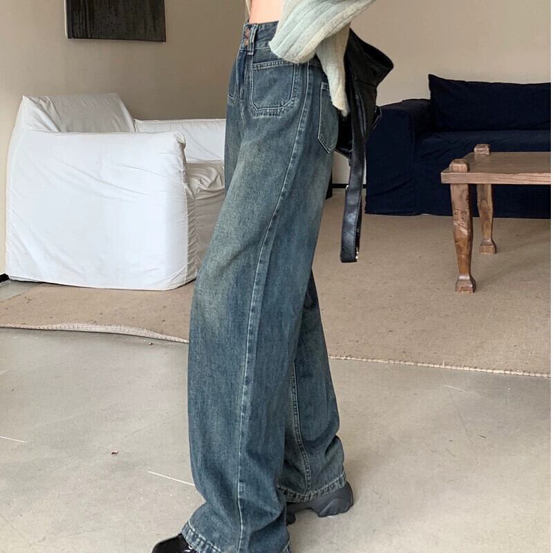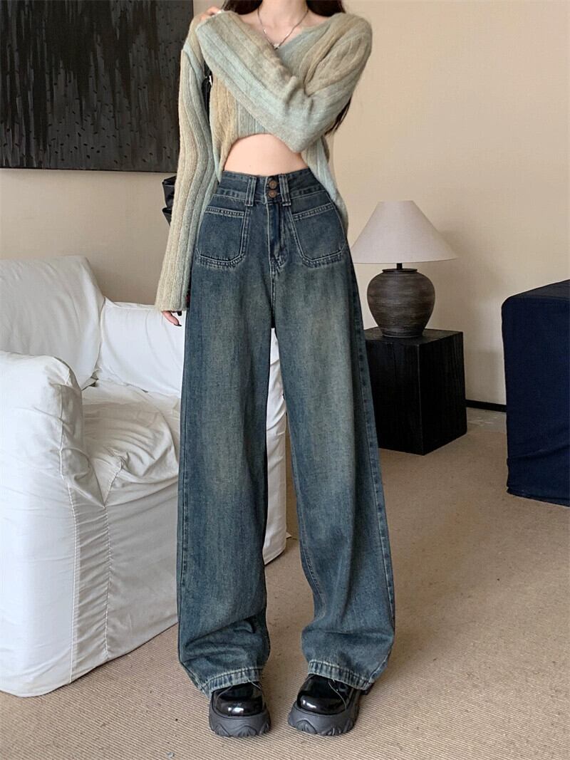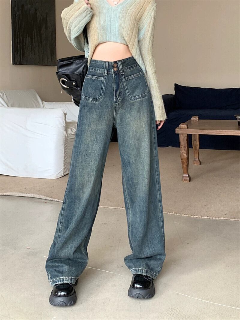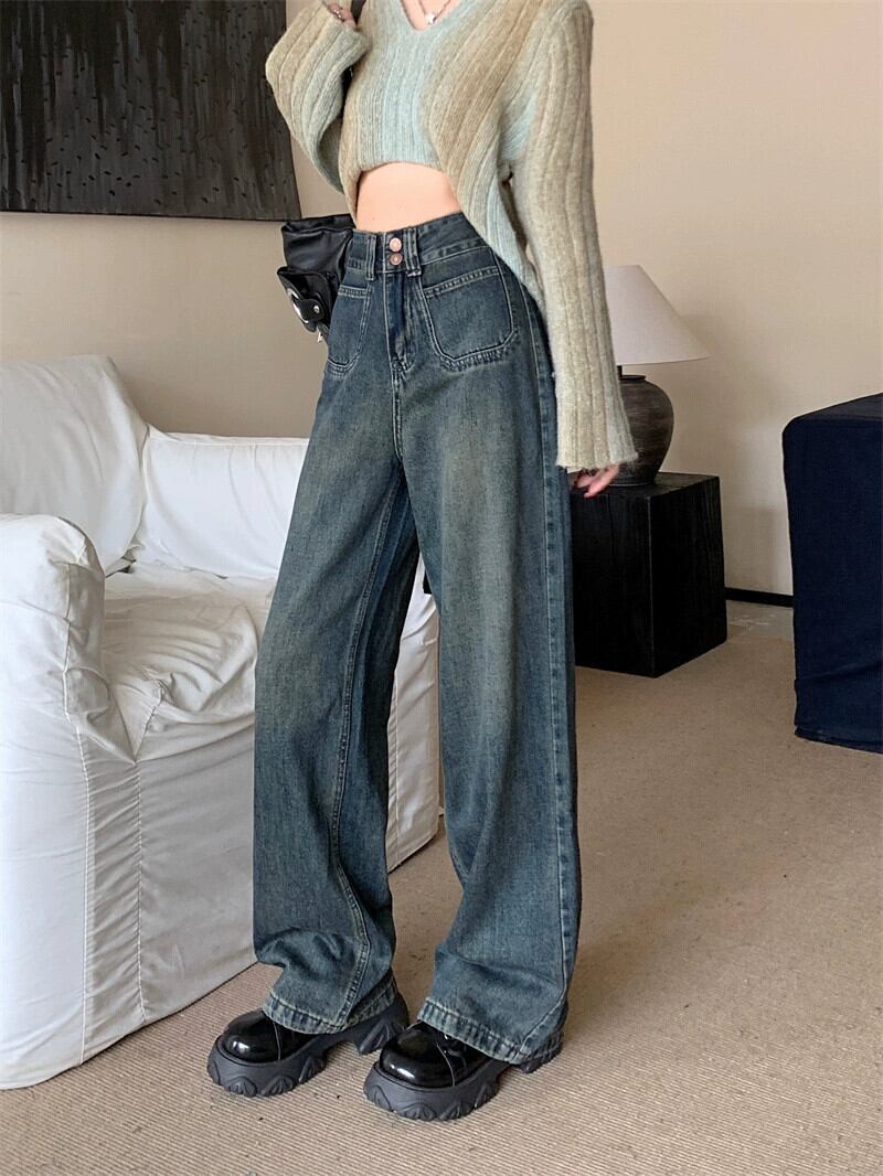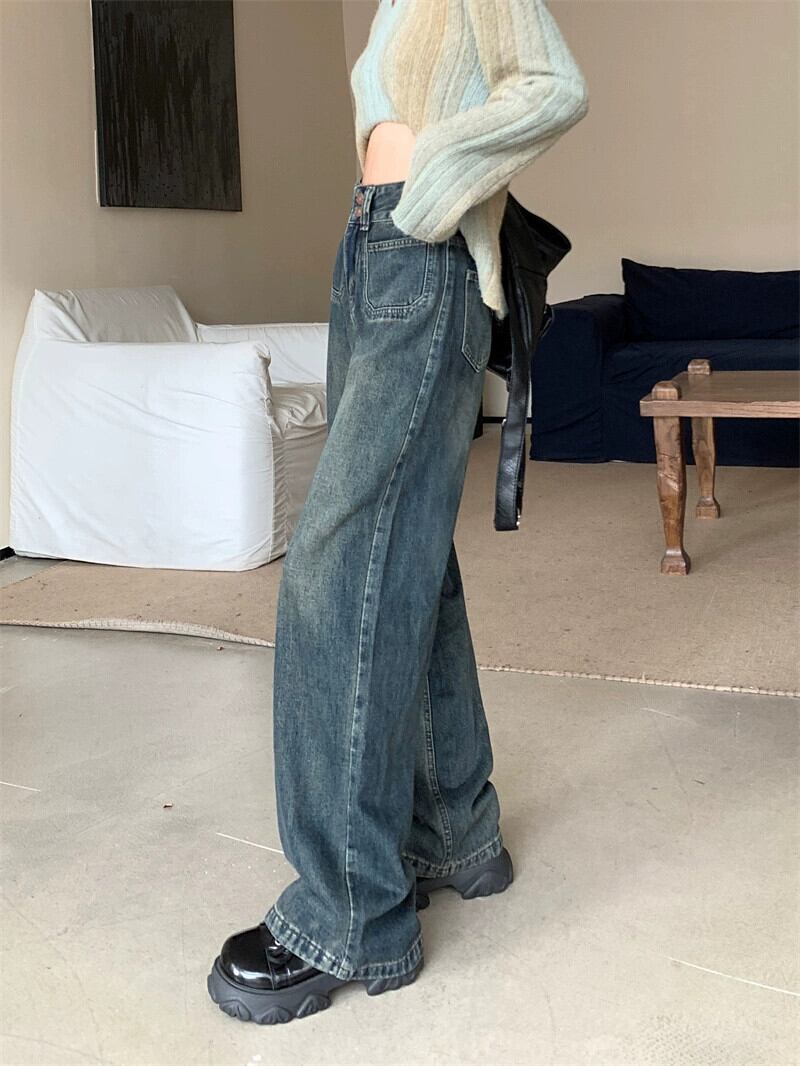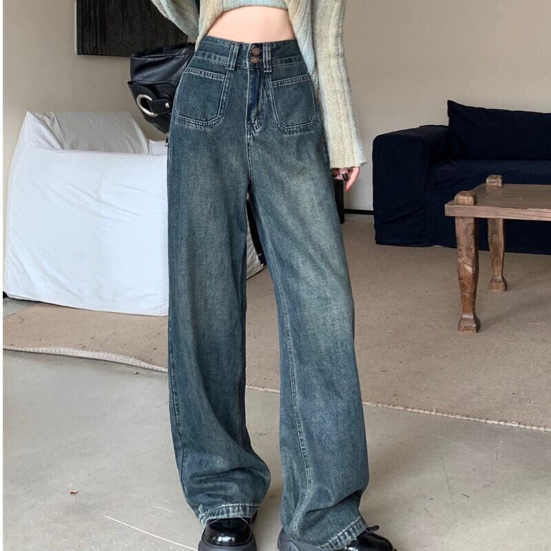 ストレートレッグジーンズ女性 2024 新作春大きいサイズ太いミリメートルハイウエストナローバージョンドレープルーズフロアレングスワイドレッグパンツ 大きめサイズ スプリング 春物 8884148178711249
