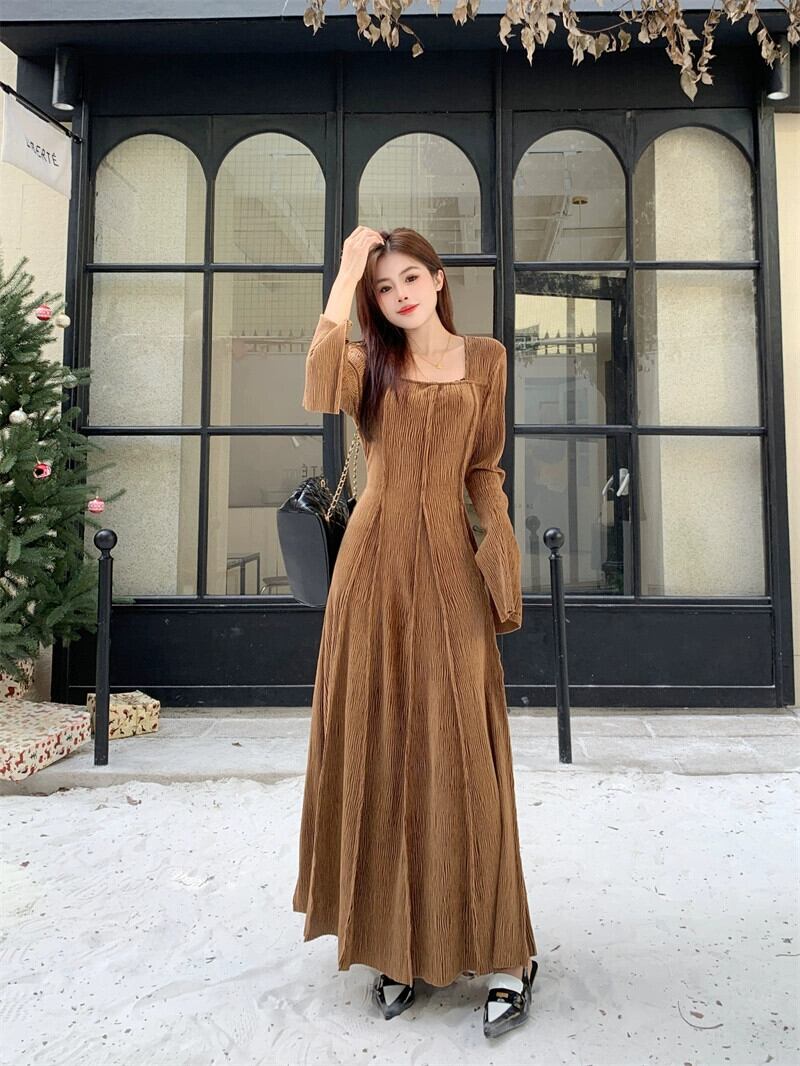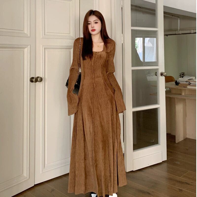 プラスサイズのヘップバーンスタイルレトロショルダードレス女性春ウエスト痩身ボトミングロングスカートと脂肪mm気質スカート 大きめサイズ スプリング 春物 8884142620338901