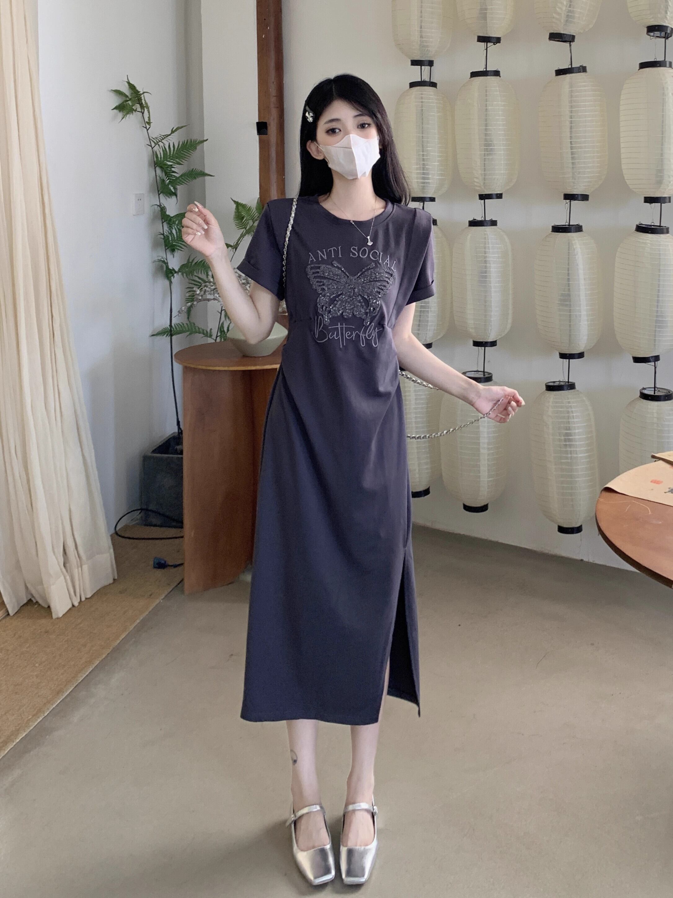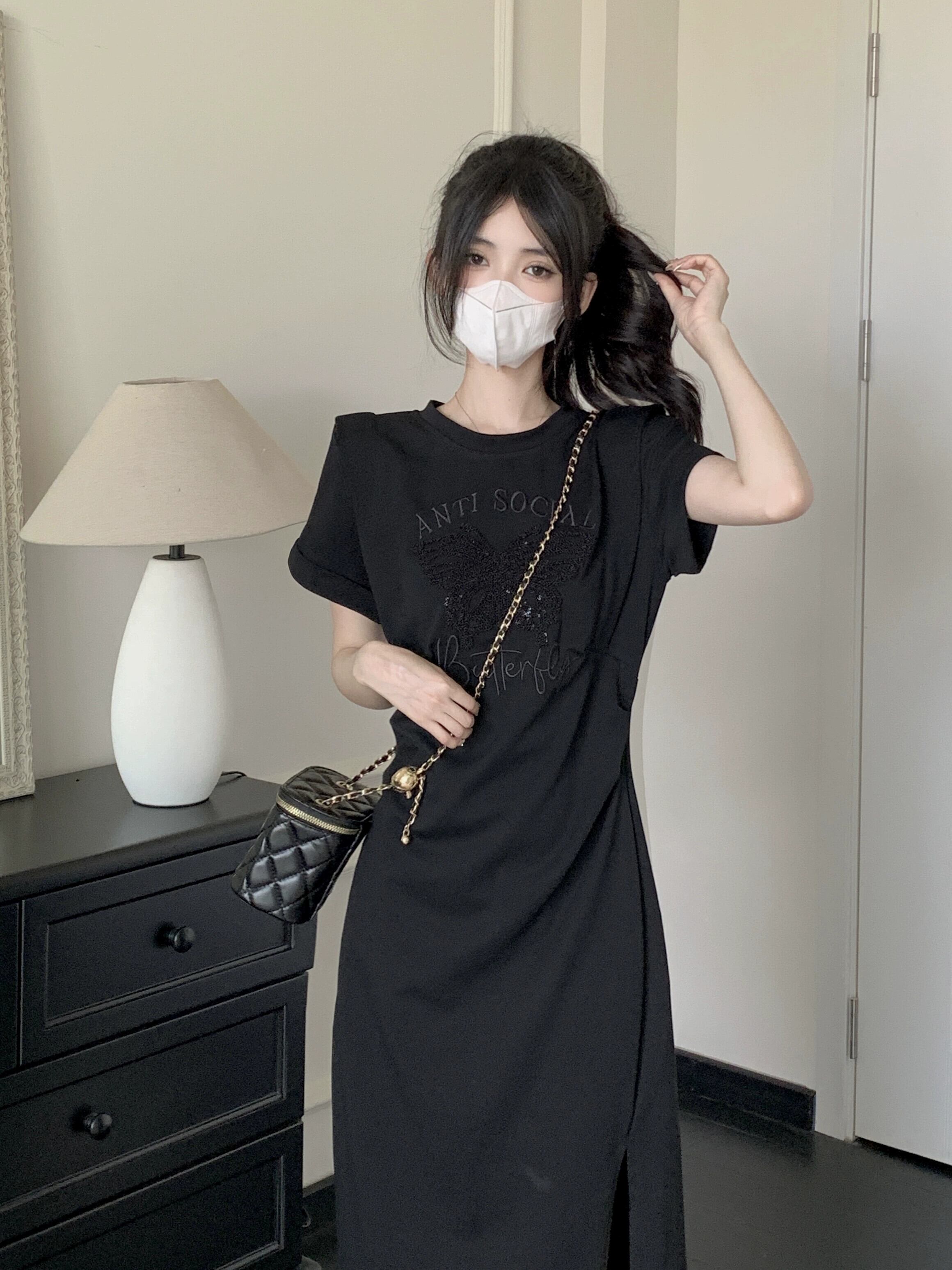 プラスサイズの女性の脂肪 mm 夏の新スタイル 2024 ハイエンドラウンドネック漫画プリントスカートファッショナブルな気質年齢を減らすドレス 大きめサイズ サマー 夏物 Oネック 8884138715925667