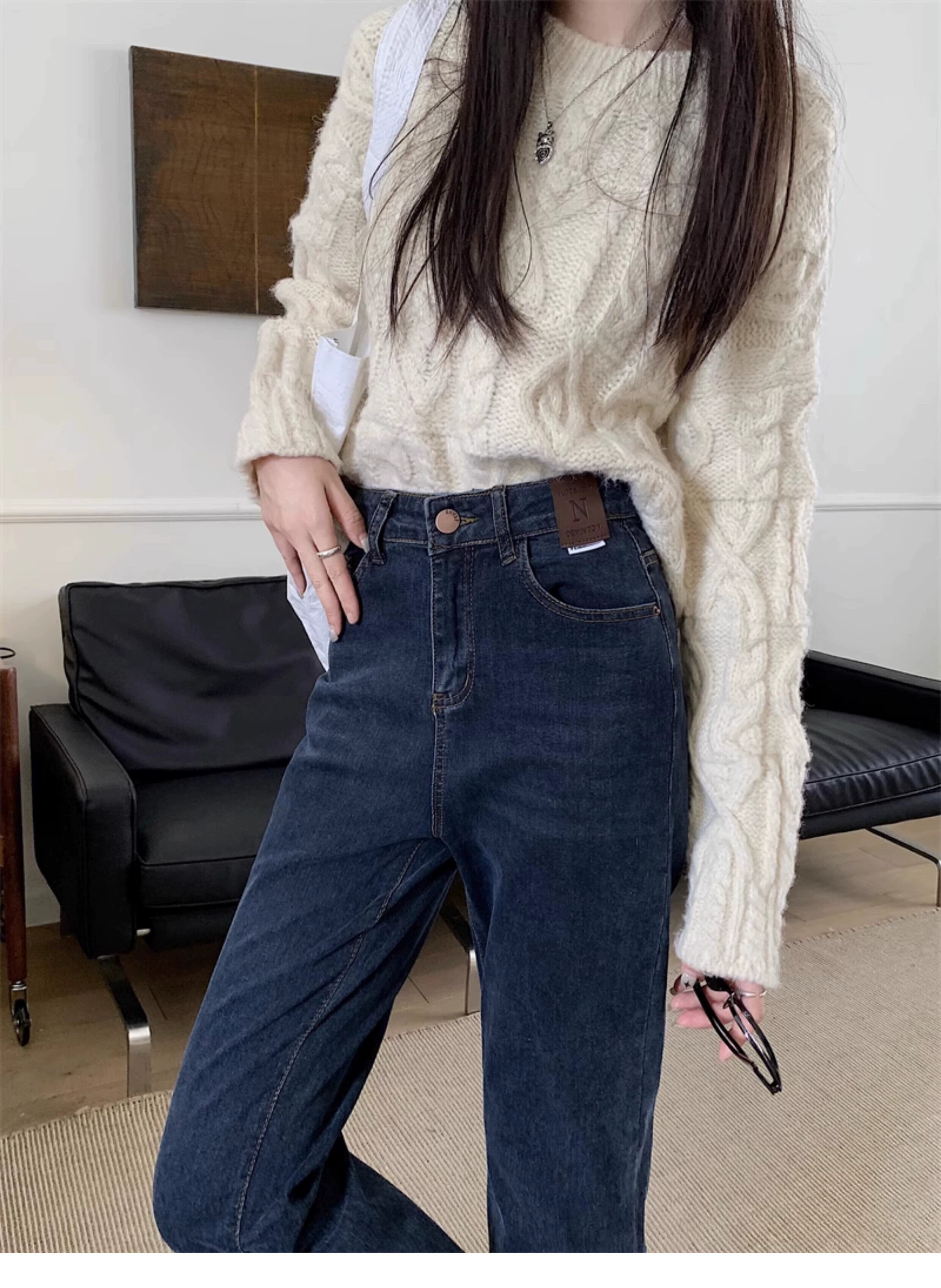 プラスサイズの婦人服ファット mm 春の新スタイル 2024 レトロブルーストレートジーンズデザインハイウエストスリム 9 点パンツ ハイウェスト 大きめサイズ スプリング 春物 888417980571130