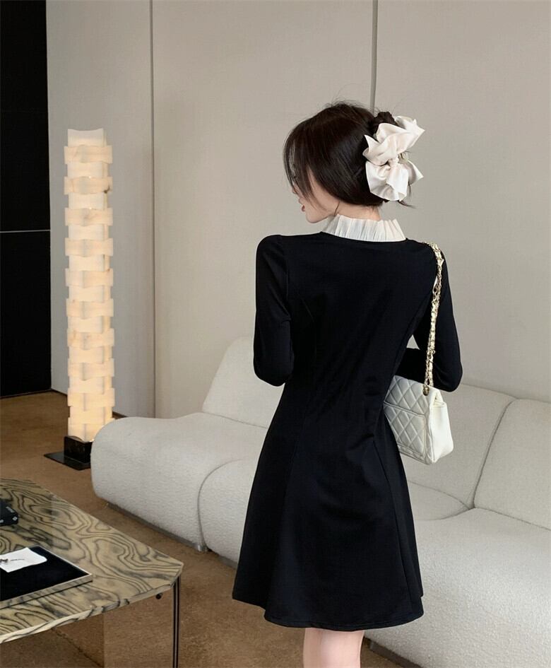 プラスサイズのヘップバーンスタイルのドレスの女性の春 2024 新しいドレープリトルブラックドレス洋ナシ形の体型痩身 a ラインスカート 大きめサイズ スプリング 春物 Aライン 8884118462773966