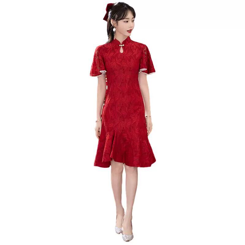 プラスサイズの婦人服脂肪 mm 夏新 2024 トースト着用花嫁チャイナドレスは通常着用気質蓮の葉のスカート 大きめサイズ サマー 夏物 888419012215314