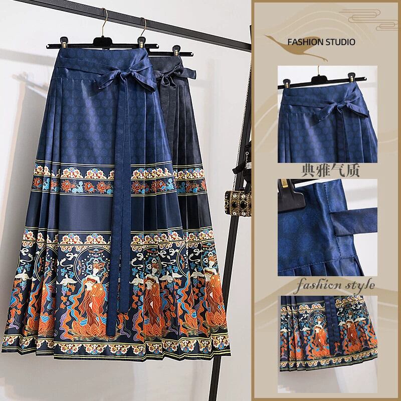 プラスサイズの女性の 2024 春の新スカート新中国風オリジナル改善された国民風漢服痩身馬の顔スカートトレンド 大きめサイズ スプリング 春物 8884145027844204