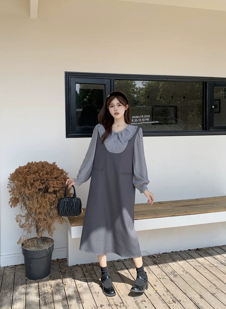 プラスサイズの婦人服ファット mm 春の新 2024 人形の襟ハイエンドの対照的な気質年齢を減らすスリムドレストレンド 大きめサイズ スプリング 春物 8884193185735900