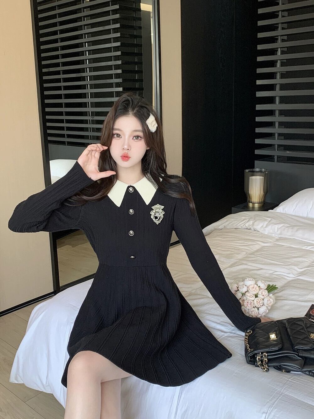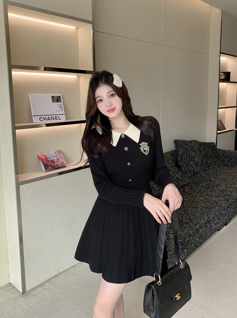 大きいサイズのハイエンドカレッジスタイルのウエストドレス 2024 春の新女性の脂肪 mm スリムフレンチリトルブラックドレス 大きめサイズ スプリング 春物 8884149120961118