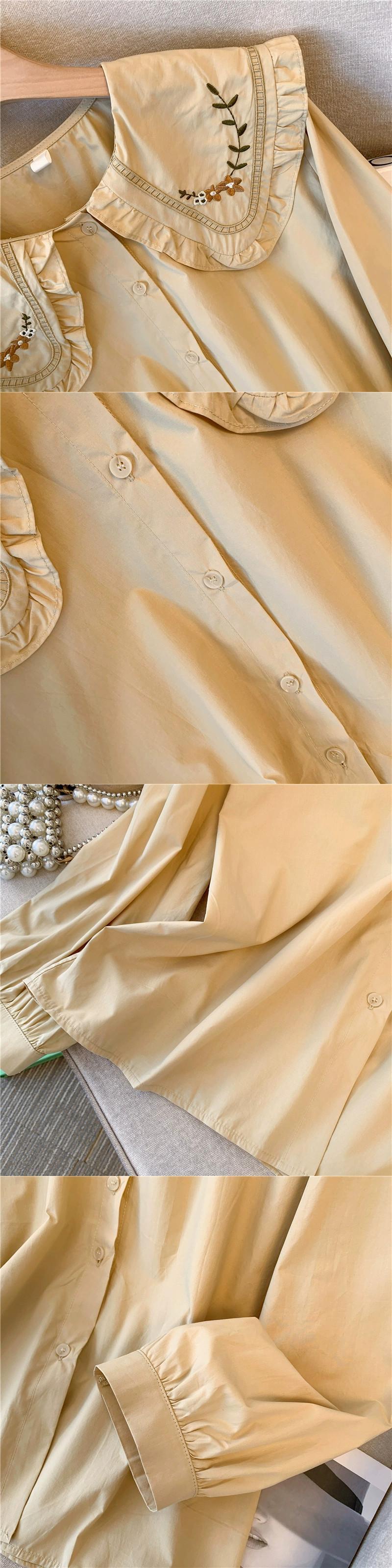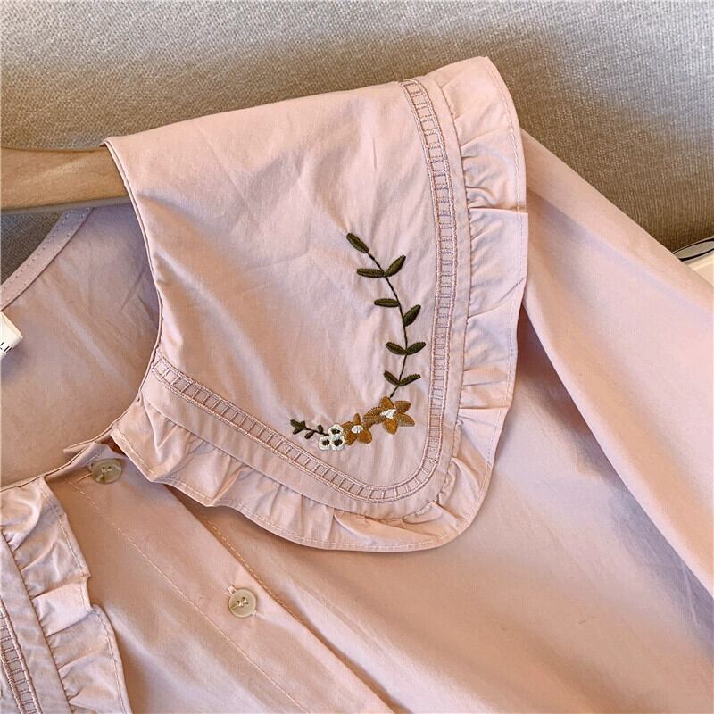 プラスサイズの女性の 2024 春の新長袖シングルブレスト右肩人形襟刺繍ファッション多用途スリムシャツ ロング レッド 大きめサイズ スプリング 春物 888419386208146